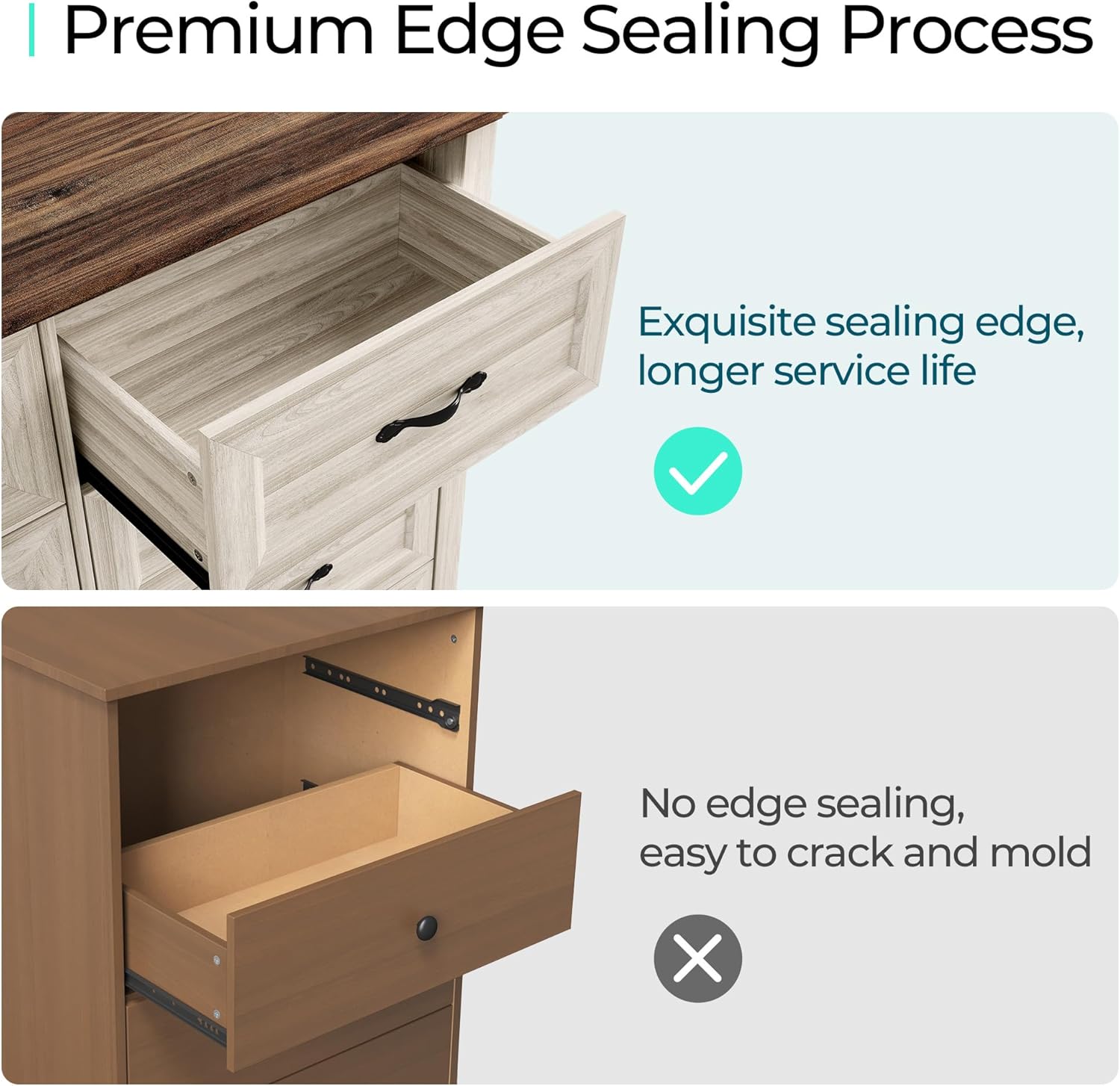 - [BUY WITH CONFIDENCE] Comes with detailed Installation instructions, parts and accessories are coded, precise holes make installation accurate and faster. Our anti-falling accessory and stabilizing device at the back of the dresser make sure it stays put and doesn't give you any unexpected surprises.