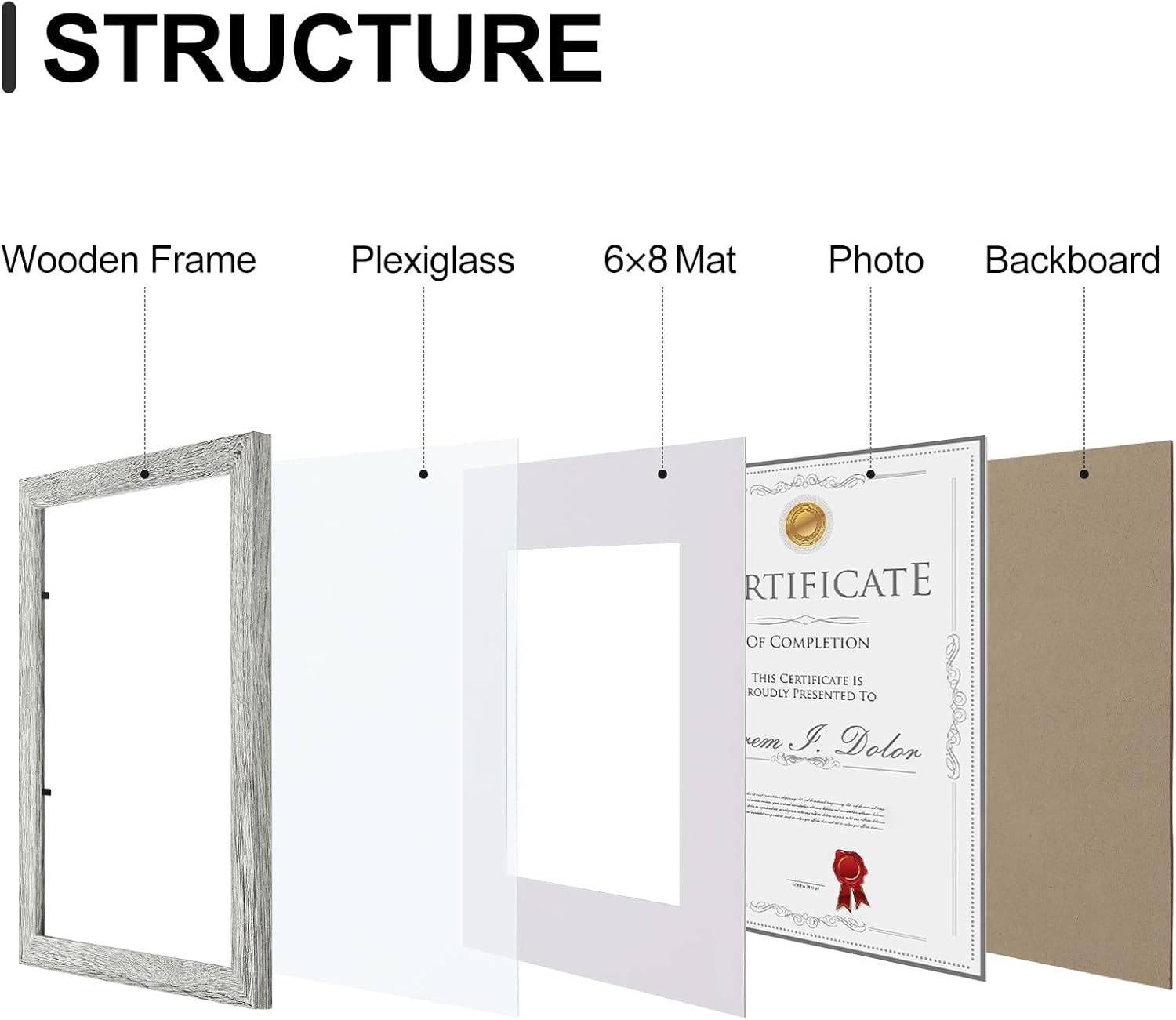 - Premium Materials: Made of sturdy composite wood material, our frames are lightweight and built to last. With a high-definition plexiglass front that resists breaking, simply remove the protective film before use to reveal crystal-clear clarity