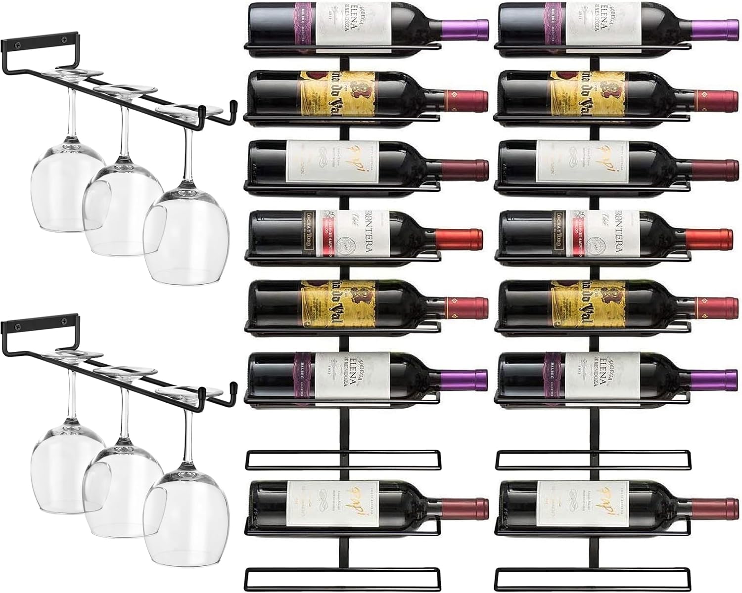 - What’s Included: You will receive two Sorbus Wall Mounted Wine Rack and two Sorbus Wine Glass Holders in this wine lovers set - Organize bottles, glasses, and more