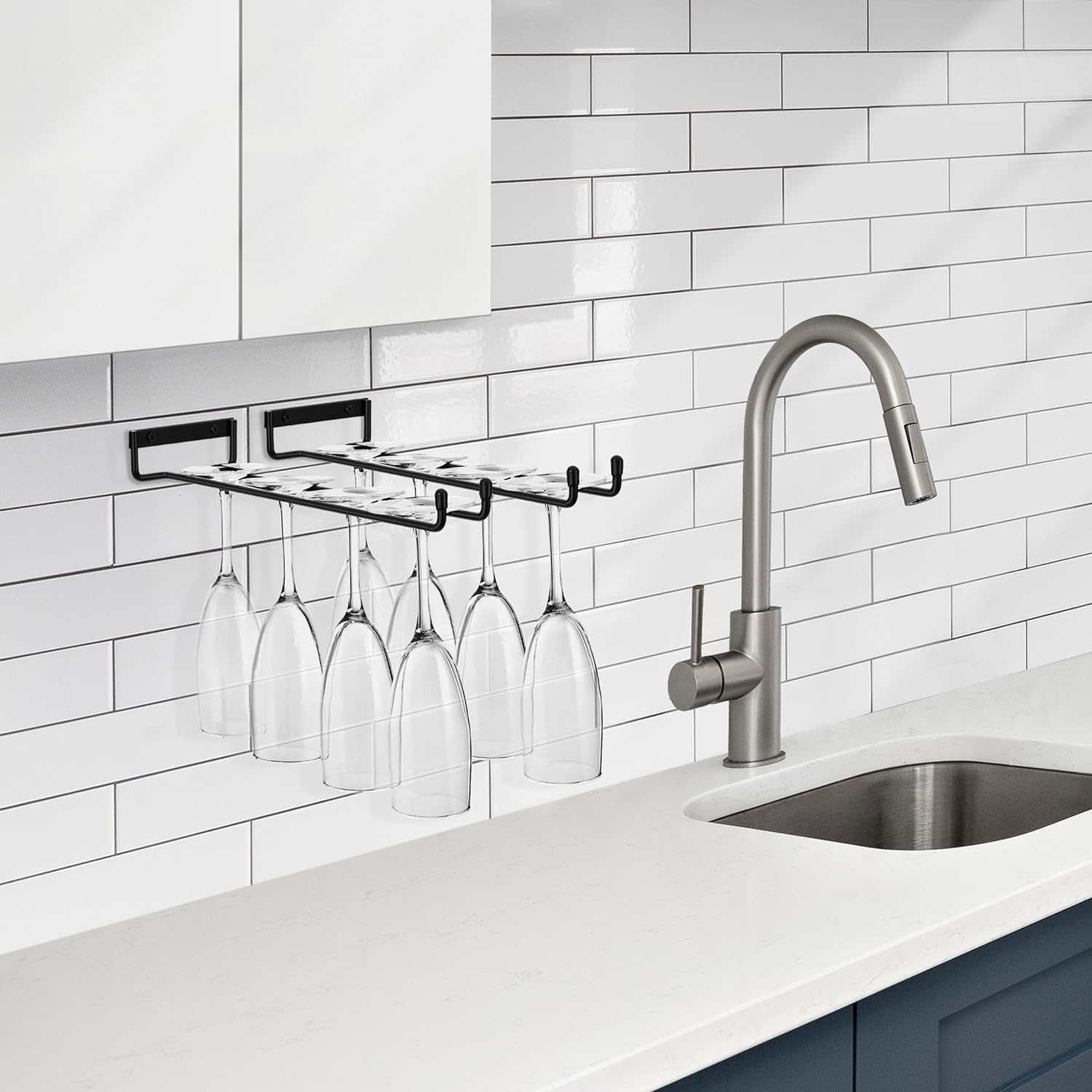 - Space Saver: Glasses holder will display your wine glasses while creating easy access without taking up space in your cabinets or on your countertops - Perfect for use in a home bar, home kitchen, wine cabinet, under cabinet shelf, or corner bar