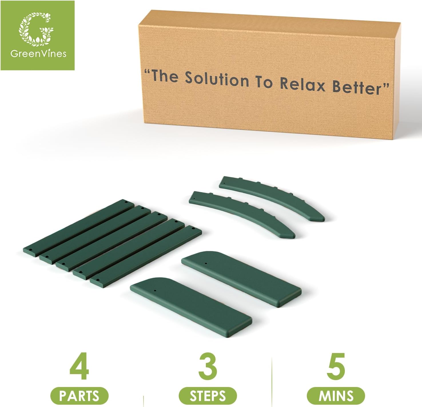 GREENVINES Adirondack-Ottoman | HDPE Plastic | Outdoor Footrest | All Weather | Foot Rest | Foot Stool | Forest | for Adirondack Chair | for Patio Backyard Pool