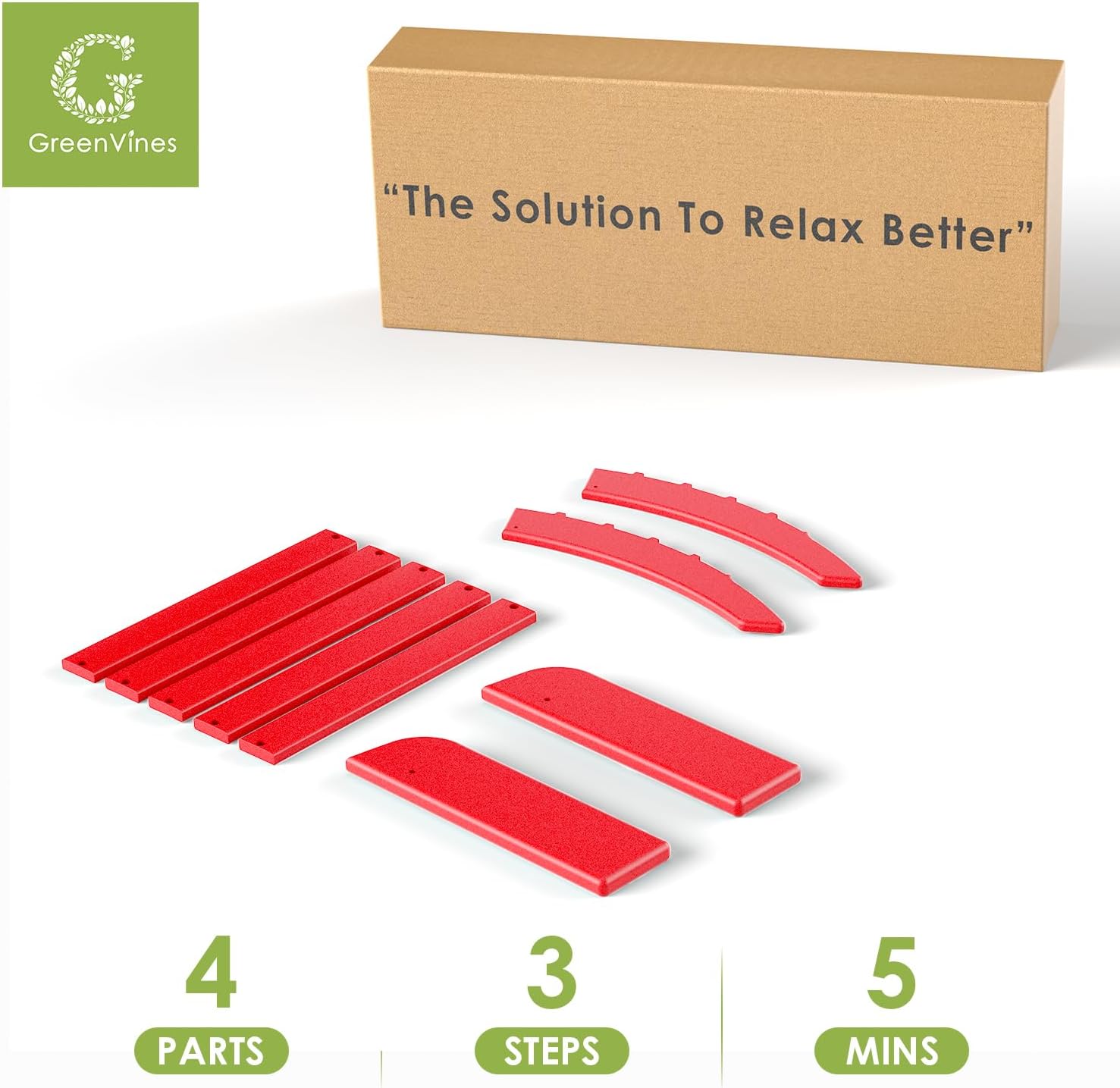 GREENVINES Adirondack-Ottoman | HDPE Plastic | Outdoor Footrest | All Weather | Foot Rest | Foot Stool | Red | for Adirondack Chair | for Patio Backyard Pool