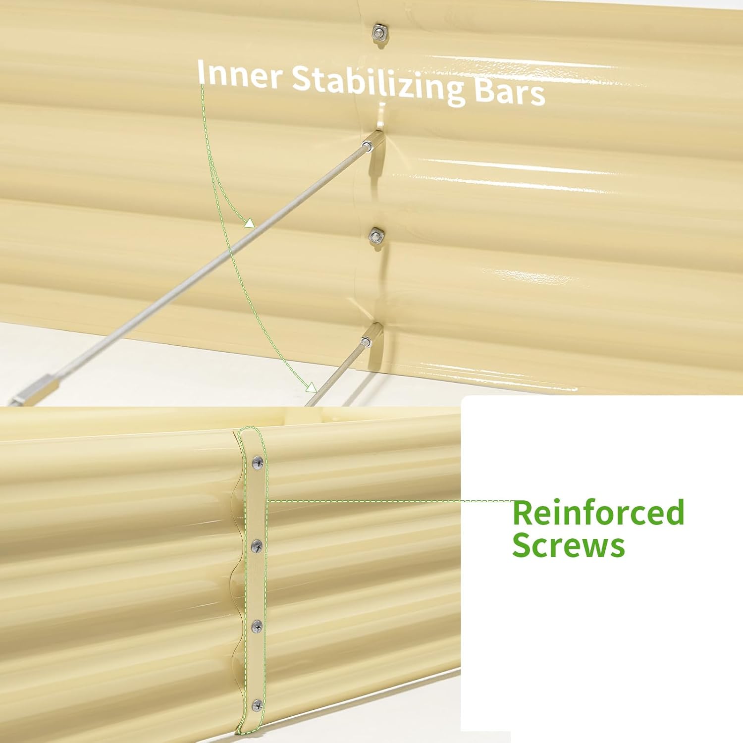 - Stable and Solid Construction: Double card frames on the two sides of the sheet make the raised garden kits more durable and stable, and 4 reinforcing rods make the whole raised garden bed more stable. Never worry about its distortion or collapse and it presents a much more beautiful design.