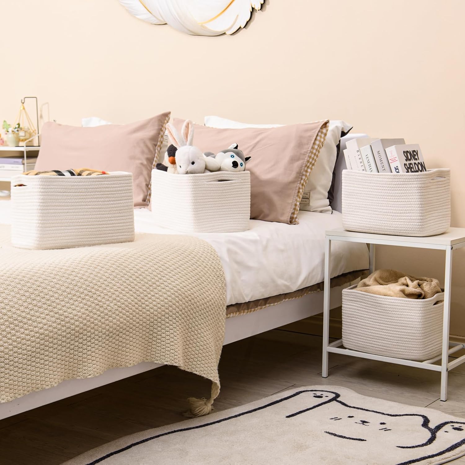 - SPACE SAVING SOLUTION: ICERZCZ 4 Pack cotton rope basket compact size and nice storage capacity will help you maximize available space while keeping your belongings organized and easily accessible at all times
