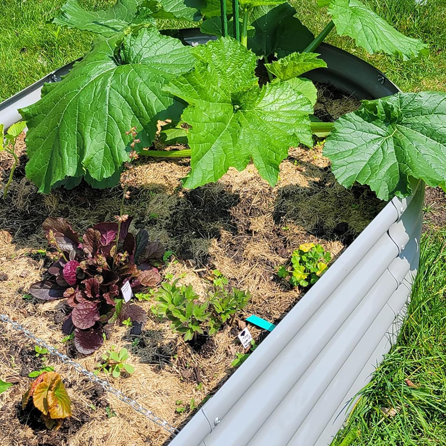 - 【Safety Features】①Anti-rust Coating, do not contaminate soil, safe for plants and humans; ②Oval shape, the raised planter box has rounded corner; ③Thickened crimped edge design, no sharp edges, smooth to the touch; ④ Gloves included; will not hurt your hand when installing or planting