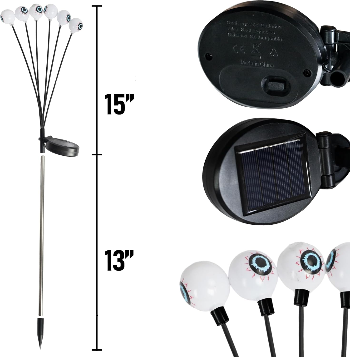 - Package Include: 6 pack 36 LED halloween eyeball lights,The upper section is 15 inches long and the lower section is 13 inches long, exquisite Halloween decorations, to create a scary atmosphere for your Halloween party.