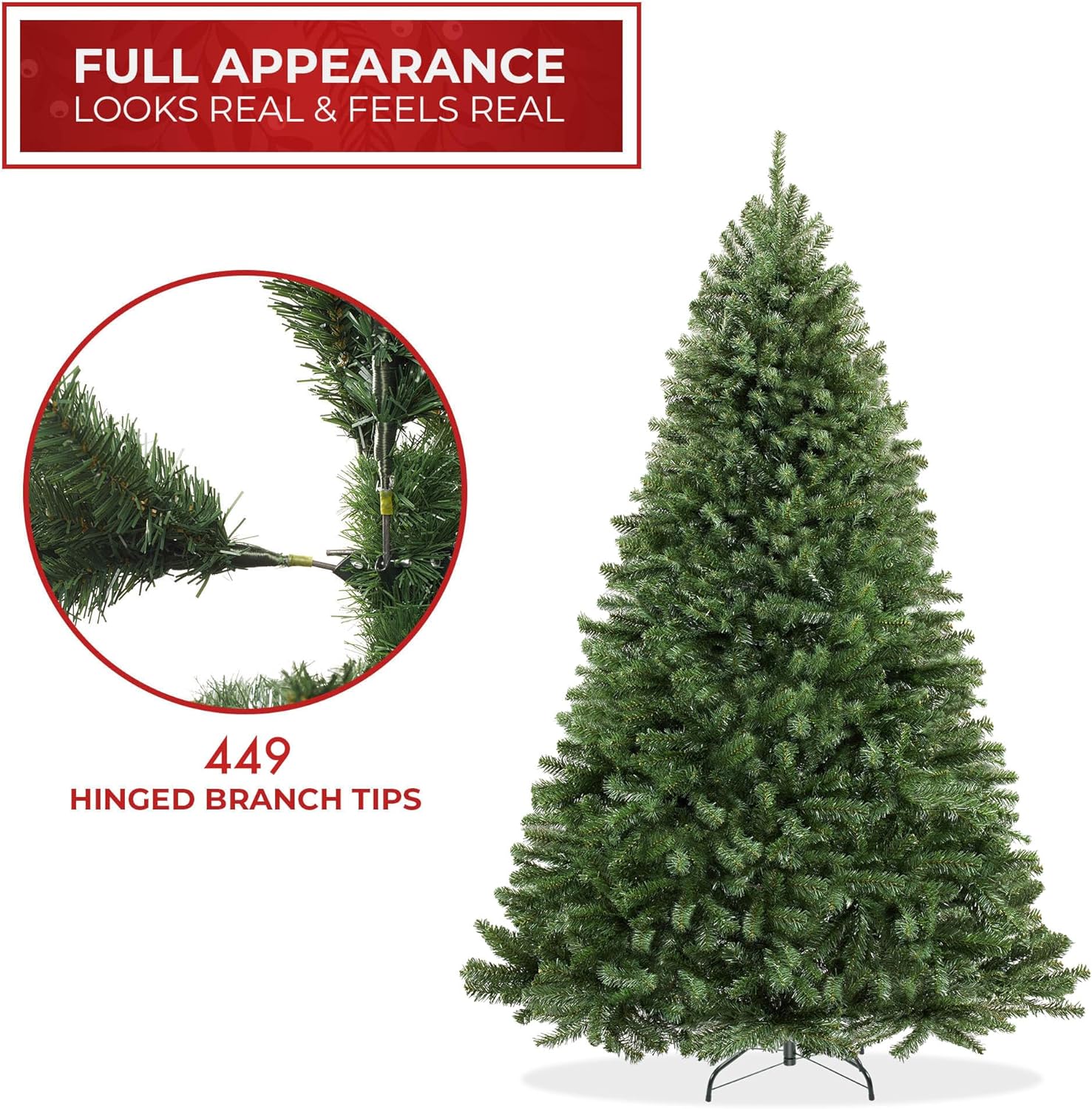 - Built to last: Constructed with flame-retardant, non-allergenic PVC, the branches and needles are designed for safety and longevity. Features hundreds of individually crafted, pre-attached branch tips with sturdy metal hinges for easy shaping and reliable use year after year.