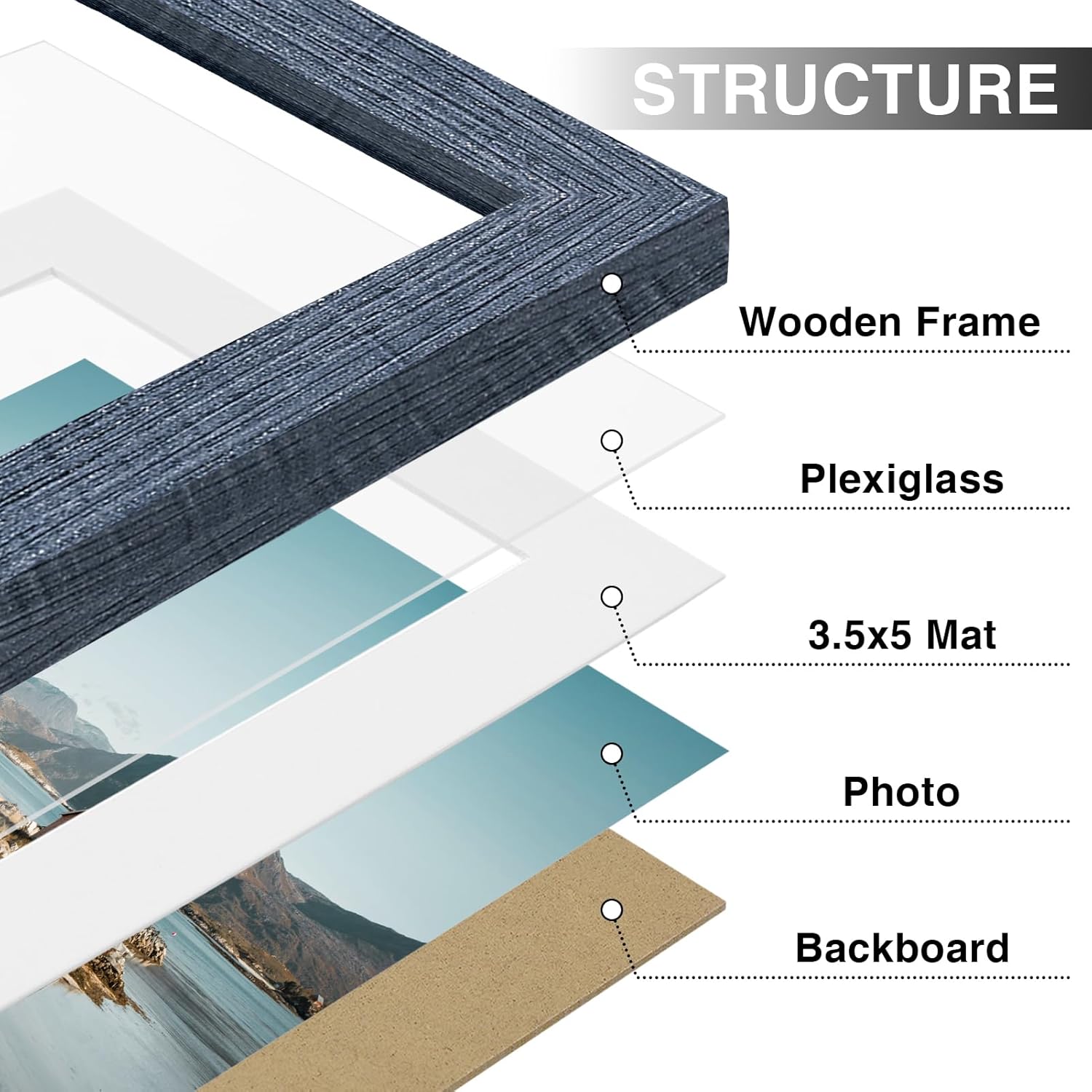 Vittanly 4x6 Picture Frames Set of 9, Shatter Resistant Plexiglass, Display 3.5x5 Pictures with Mat or 4x6 without Mat, Photo Frames for Wall or Tabletop, Engineered Wood, Navy