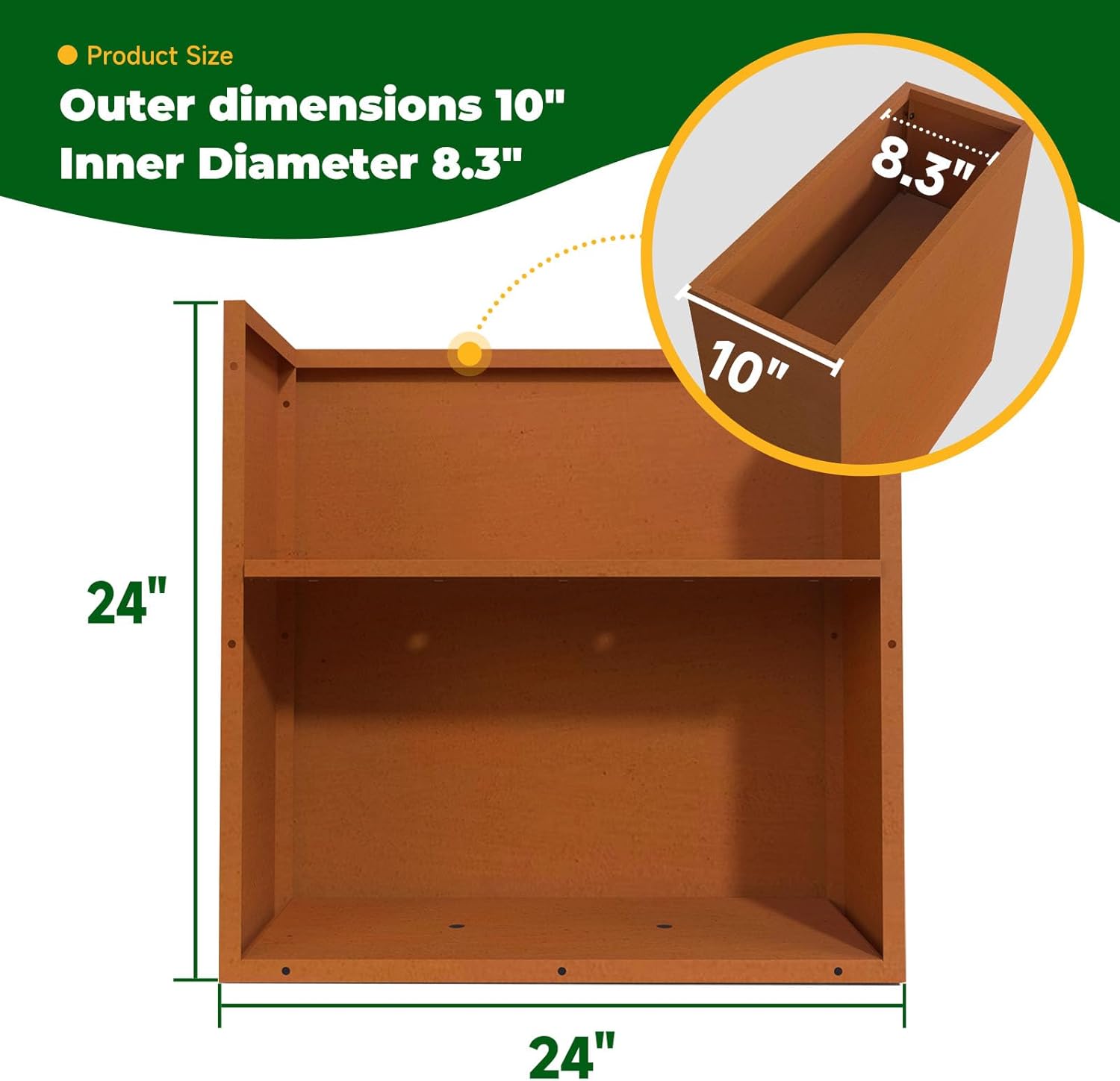 - OUTDOOR INSTALL - Our corten steel flower box are pre-rust treated, so expect some rust powder particles. Gloves are provided, and outdoor installation is recommended.