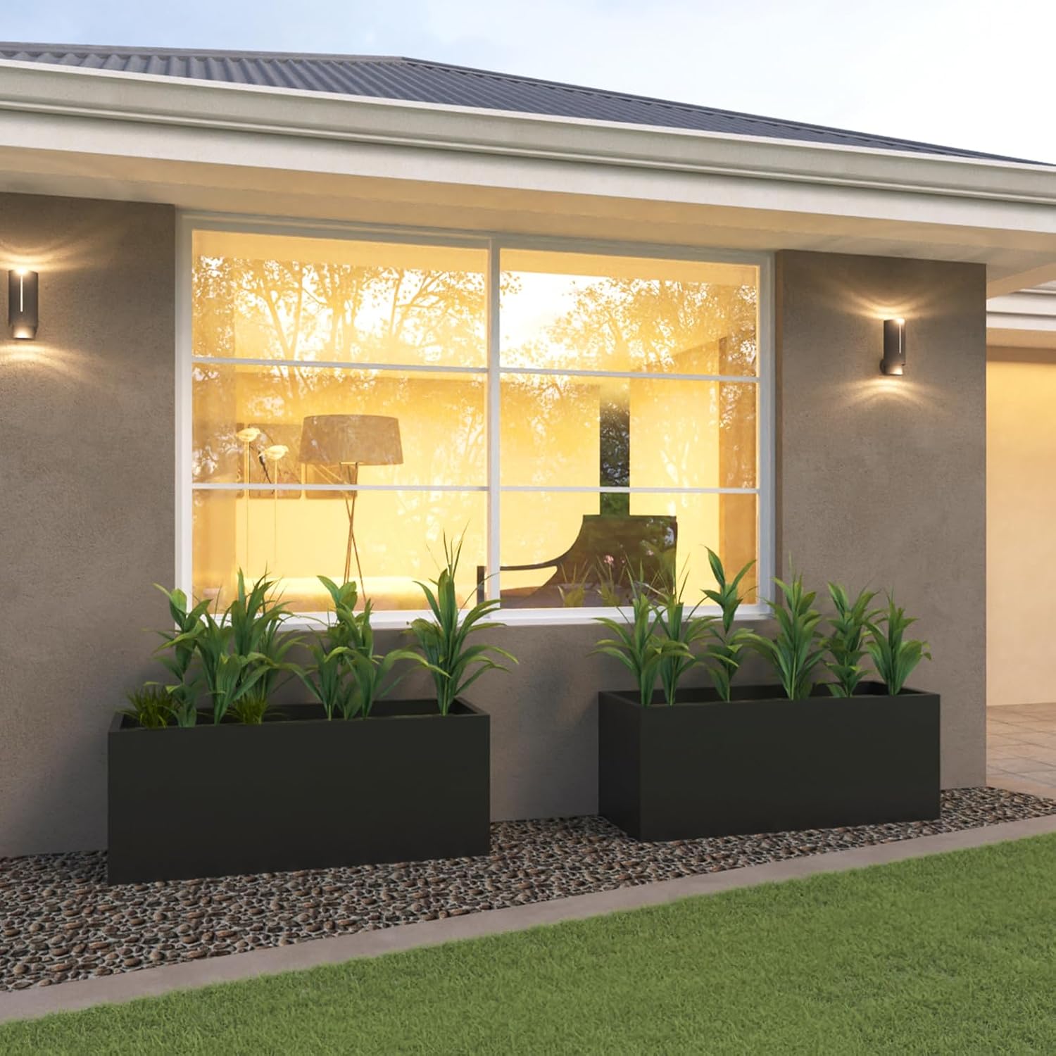 Steel Planter 36" x 12" x 16" Metal Rectangle Outdoor Planter Black Powder Coated Flower Box Metallic Heavy Pot Indoor & Outdoor, Commercial & Residential (L36 x W12 x D16, Black)