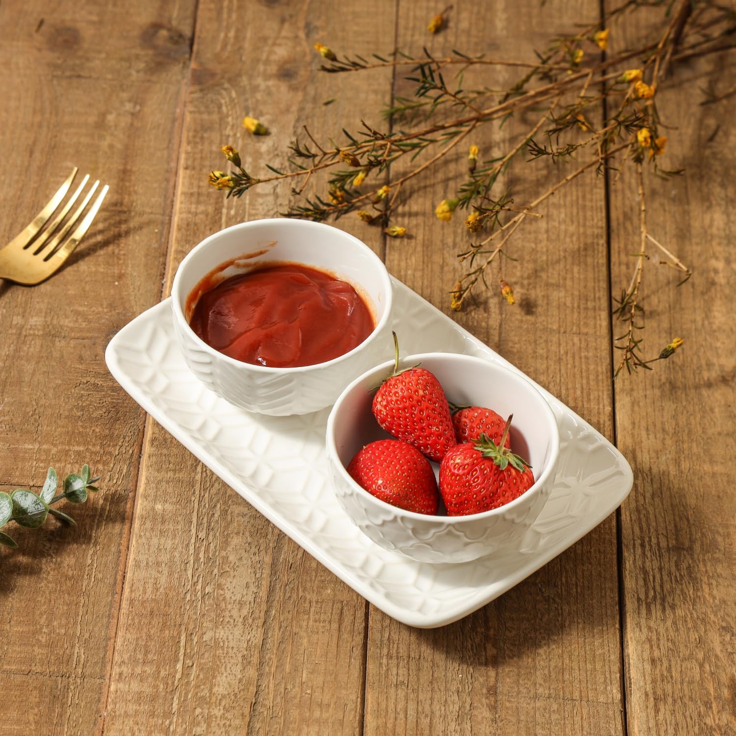 - Unique Embossed Design: These dipping bowls feature a textured pattern that adds elegance and personality to your table; The embossed surface also offers a better grip, helping prevent slips and breakage