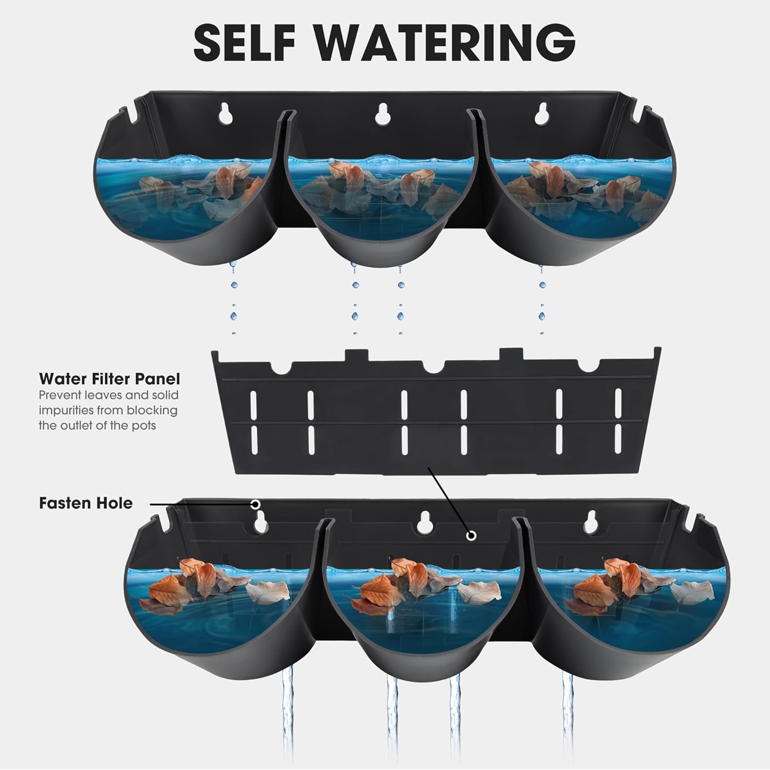 - STACKED VERTICAL DESIGN: The water filtration system from top to bottom can effectively save and retain moisture; Includes 12x water filter panels used to prevent leaves and solid impurities from blocking the outlet of the pots, 48x water level plug used to control the water level and 48x chock plugs to close the pot outlet and stop water leaking