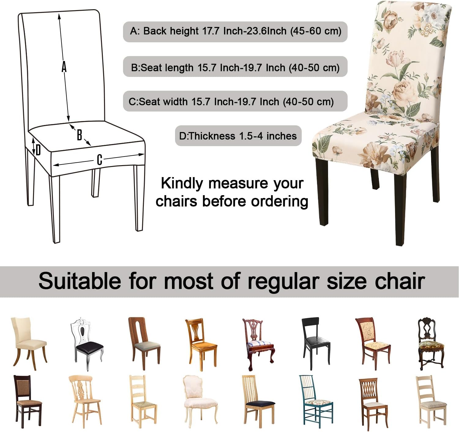 - 【Suitable for Chair Size】- Chair back height 17.7 Inch-23.6Inch (45-60 cm), Chair seat length and width 15.7 Inch-19.7 Inch (40-50 cm). Please check the measurement guide in the item picture before order