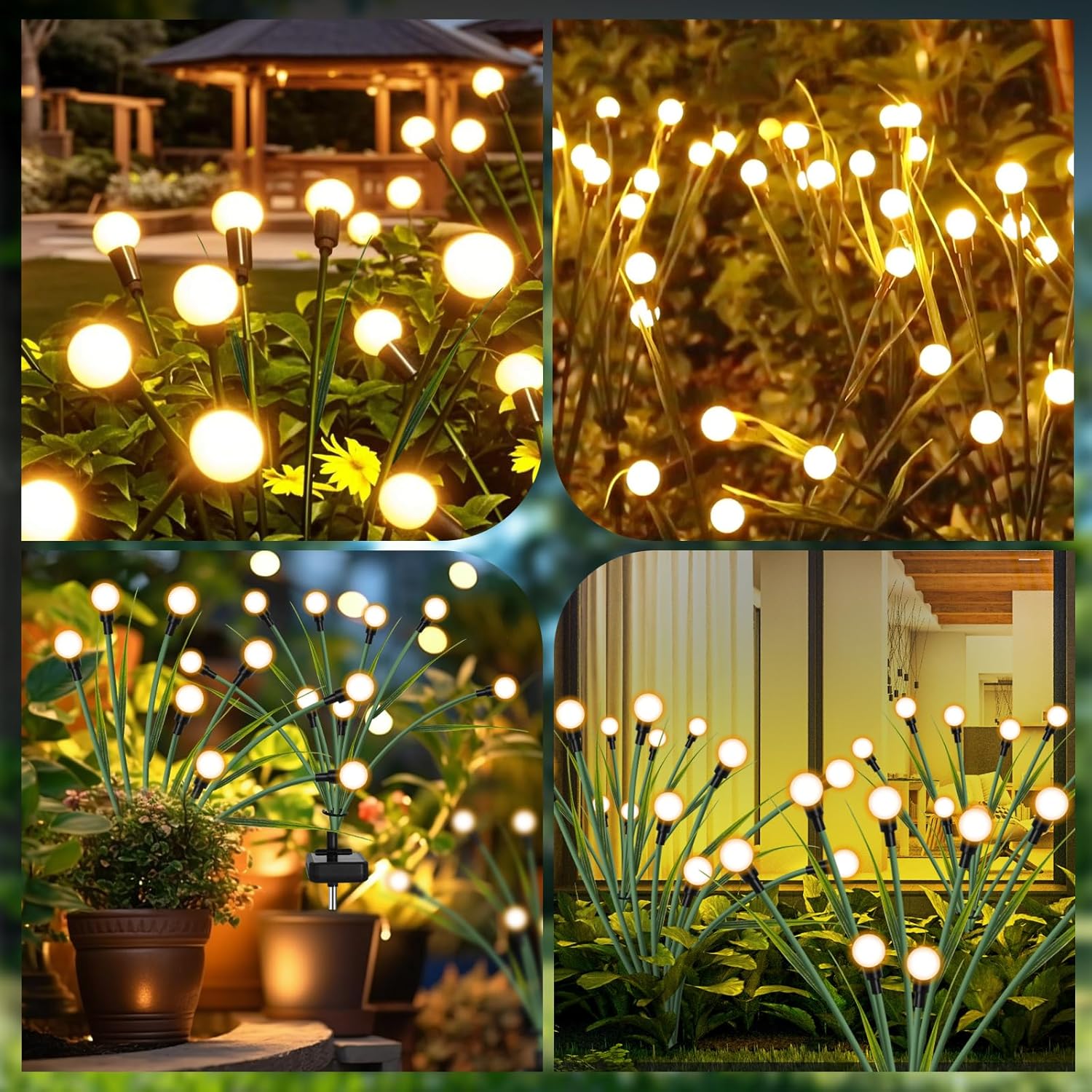 - Waterprood and Widely Use: outdoor IP65 waterproof firefly lights, made of high-quality materials, waterproof, freeze-proof, all our products are strictly tested for resistance and vibration before leaving the factory to ensure that they are long lasting. You can use the solar garden decor anywhere, such as gardens, lawns, courtyards, paths, as well as Christmas, weddings, New Year, parties, etc. No need to worry about rain, snow or bad weather.