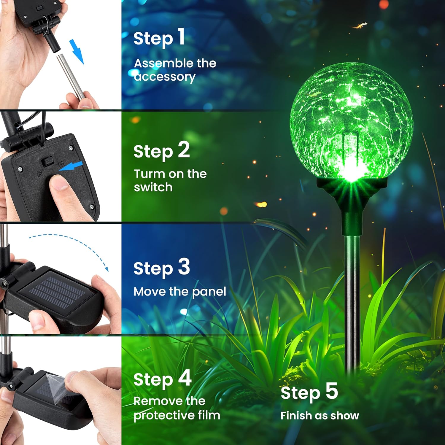 Gigalumi Solar Garden Lights 6 Pack, Solar Globe Lights Outdoor Waterproof, Solar Lights Outdoor Decorative for Yard, Multi-Colored Changing Garden Globes Cracked Glass Ball with LED Lights