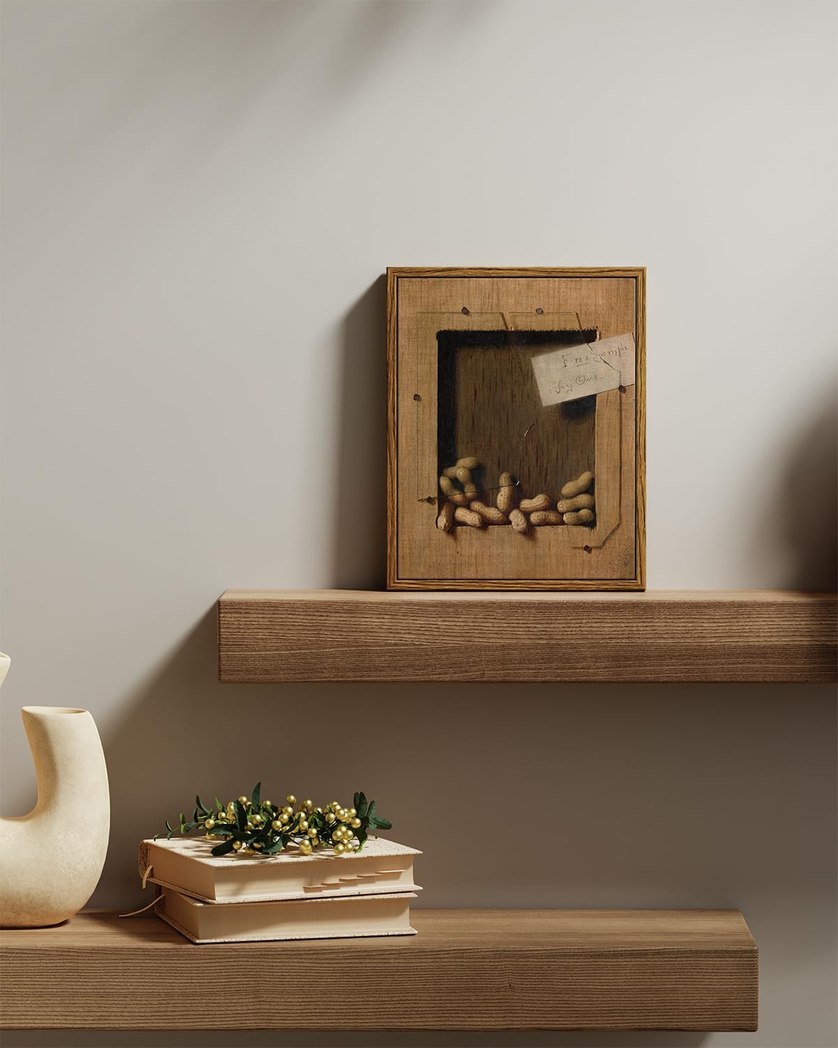VIYYIEA Framed Canvas Wall Art Home Decor Vintage Peanuts Still Life Art Home Decor Funny Boho Wall Picture Floating Shelf Decor Classical Farmhouse Oil Painting for Kitchen Dining Decor 8x10in
