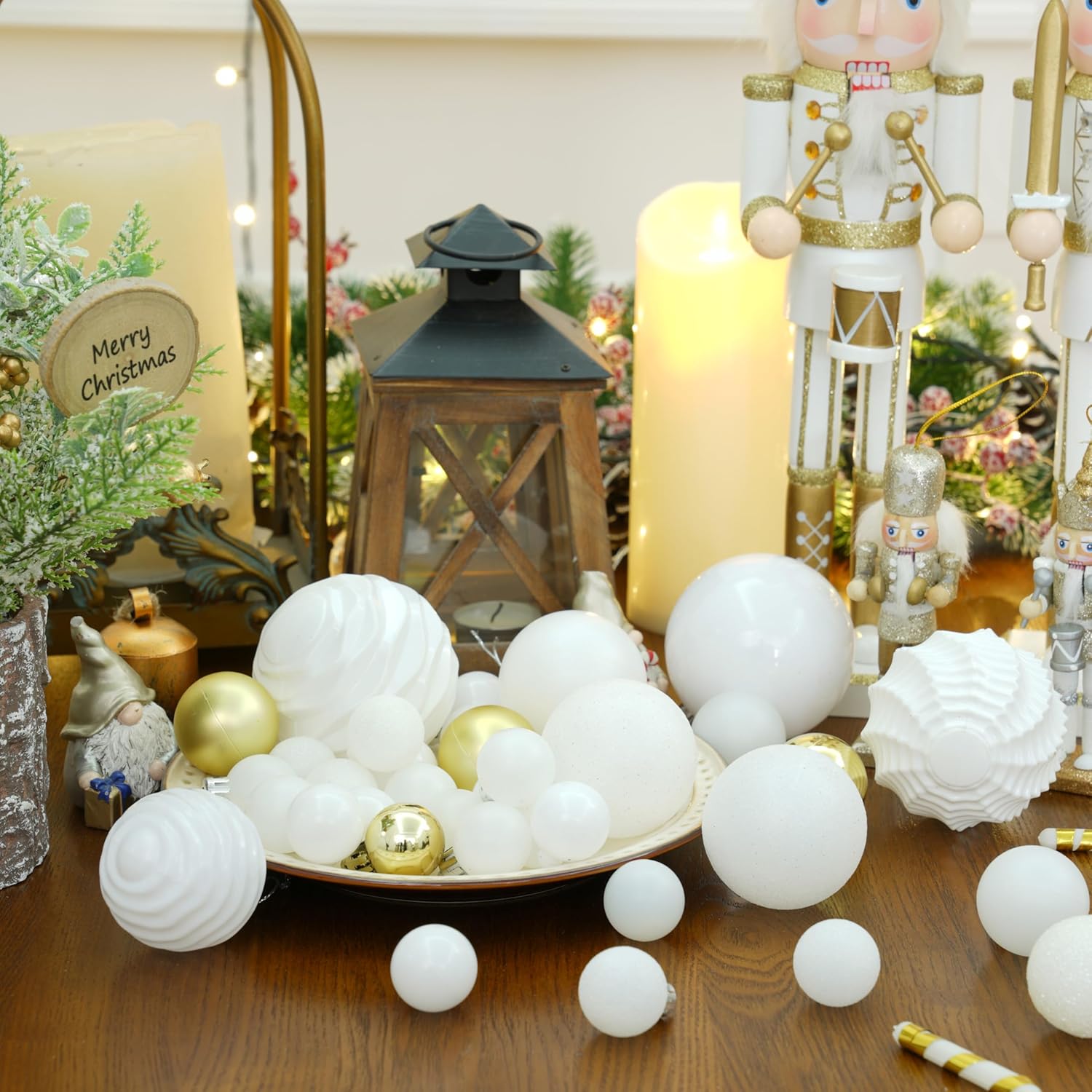 XmasExp 24ct Mini Christmas Ball Ornaments Shatterproof Christmas Ornaments Set Decorations for Xmas Tree Balls 30mm/1.18" (White)
