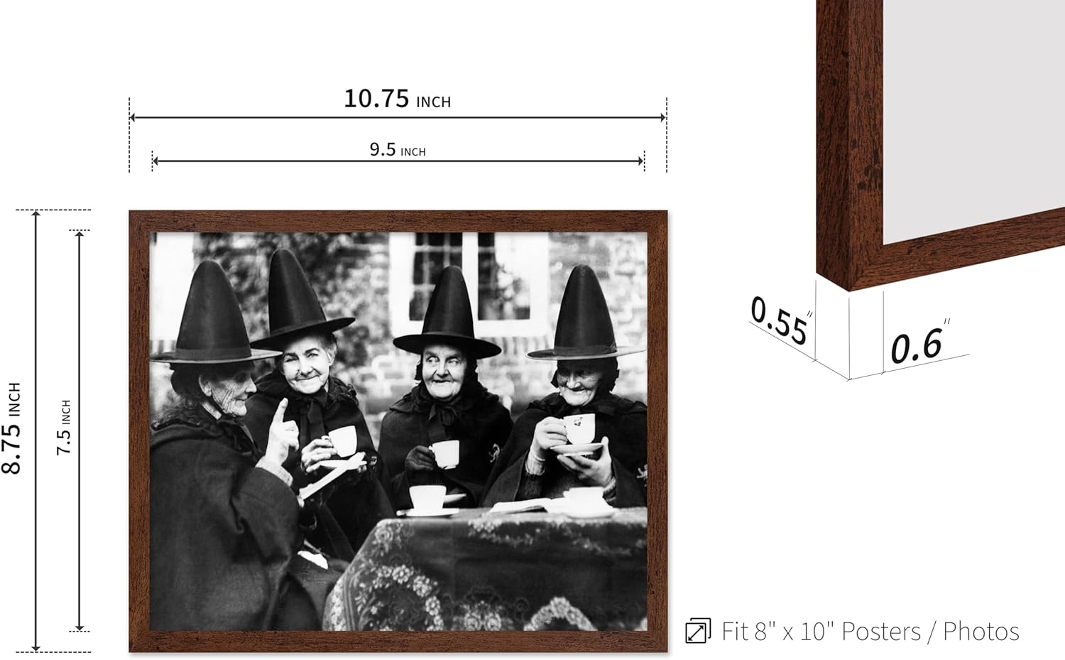 Poster Master Classic Photograph Poster - Vintage Halloween Print - Gift for Artist, Friend - Witches Tea Party, Old Women Smiling, Wearing Robes - Wall Decor for Living Room, 8x10 Brown Framed