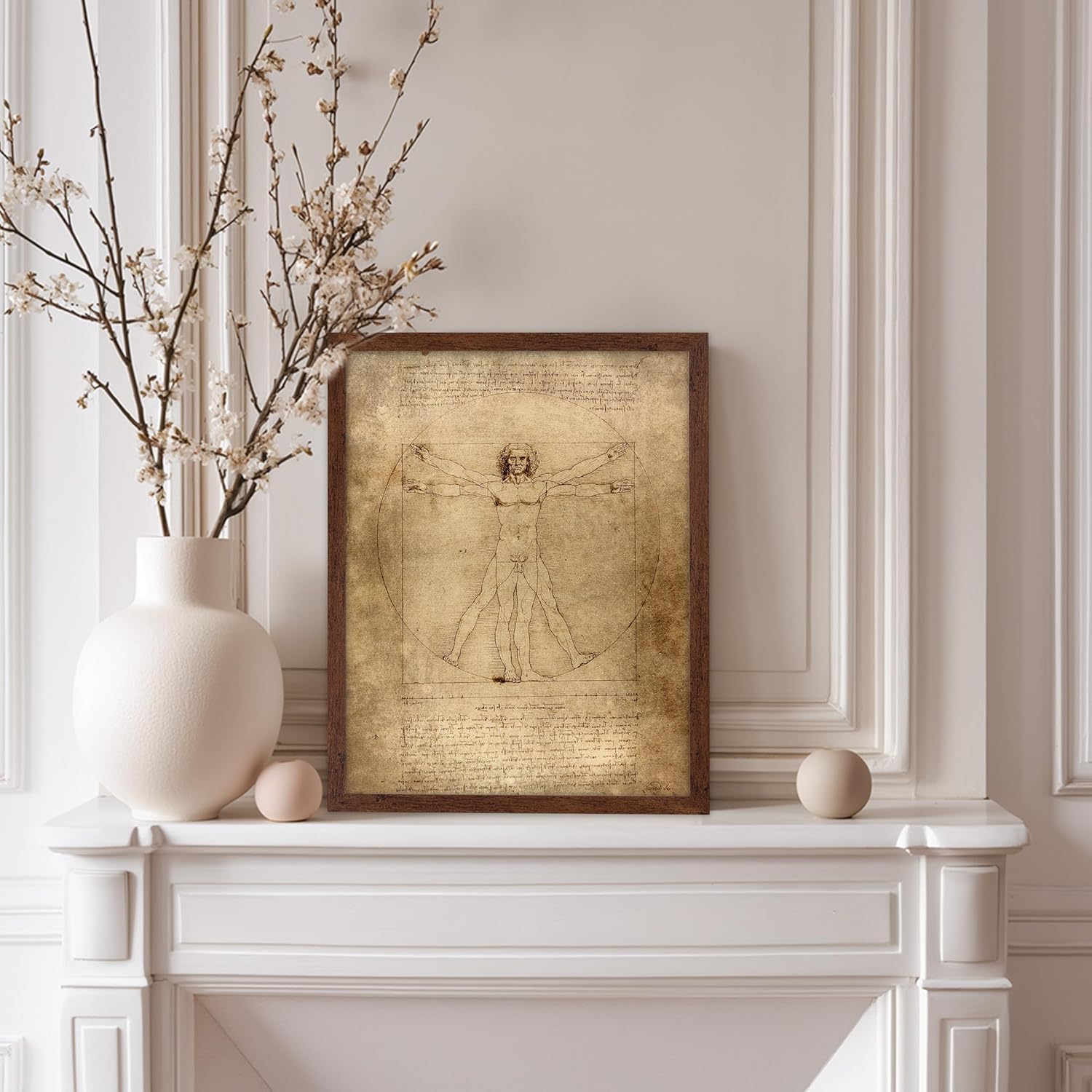 Poster Master Classic Leonardo Da Vinci Poster - Vintage Renaissance Print - Gift for Artist, Friend - Vitruvian Man, Proportion, Symmetry, Human Body - Wall Decor for Office, 11x14 Brown Framed