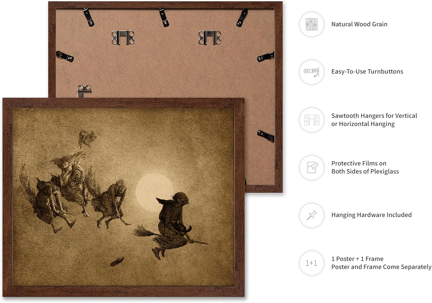 Poster Master Vintage William Holbrook Beard Poster - Retro Occult Print - Gift for Gothic, Horror Fan - The Witches Ride, Pagan, Goth, Magic - Wall Decor for Bedroom, Dorm, 11x14 Brown Framed