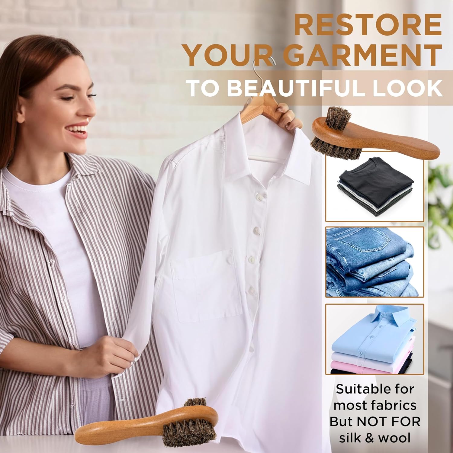 - Superior natural horsehair performance: More flexible and effective than standard nylon brushes, our genuine horsehair bristles excel at lifting spots and scrubbing stains from diverse fabrics like cotton, denim, velvet, polyester, leather, and nylon without causing damage.