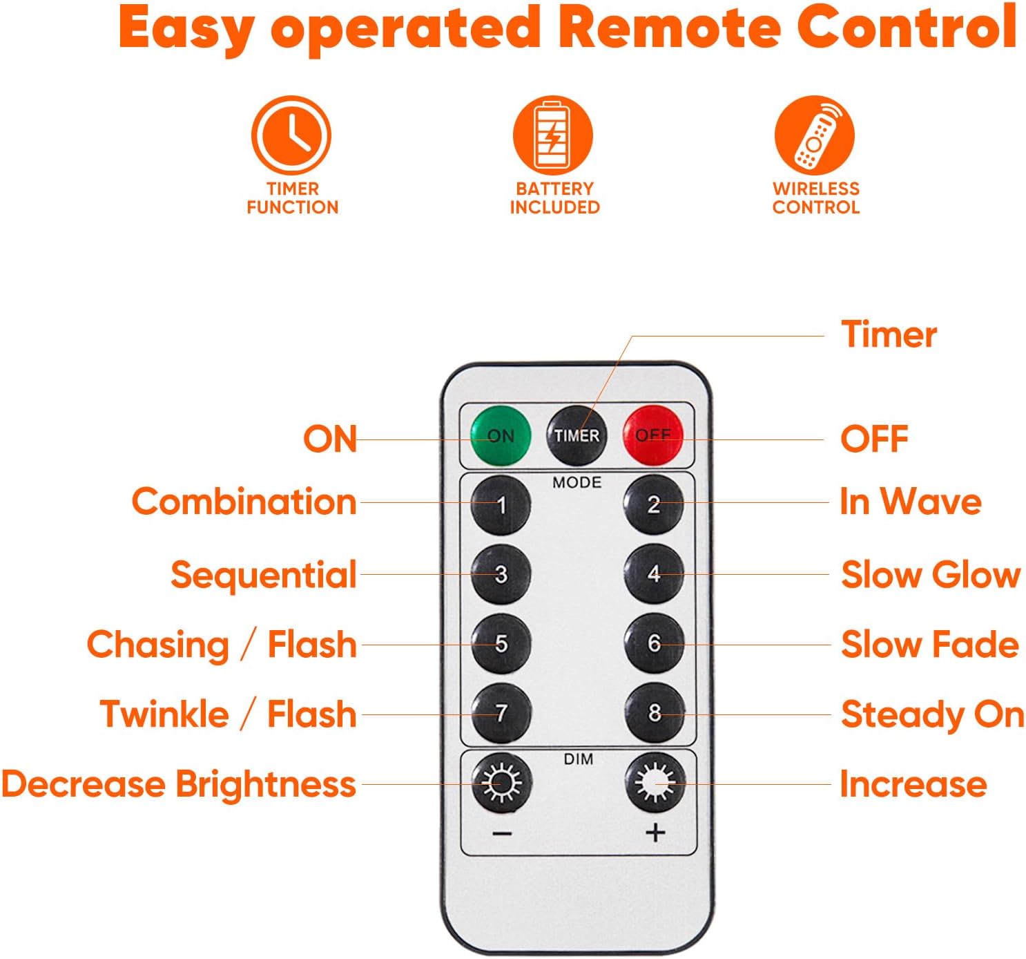 - Remote Control Convenience: Easily switch between 8 unique lighting modes and adjust brightness with the included remote; features timer for automatic 6 hours on, 18 hours off cycle.