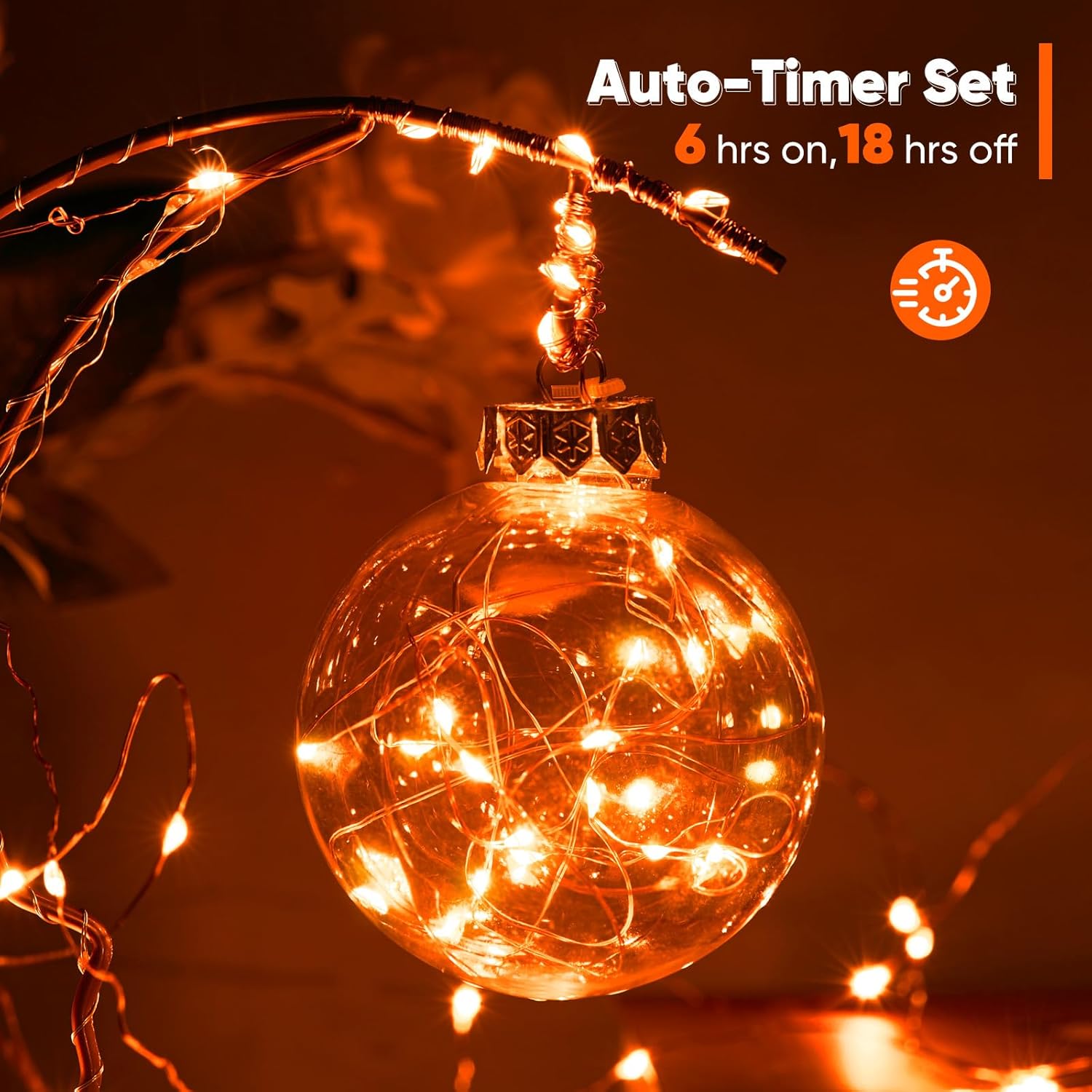 4 Pack 32.8 Ft. Battery Operated Outdoor String Lights with Remote & Timer, LED Orange Fairy Lights, Waterproof Twinkle Lights for Bedroom, Dorm, Mason Jar, Wedding, Party, Christmas