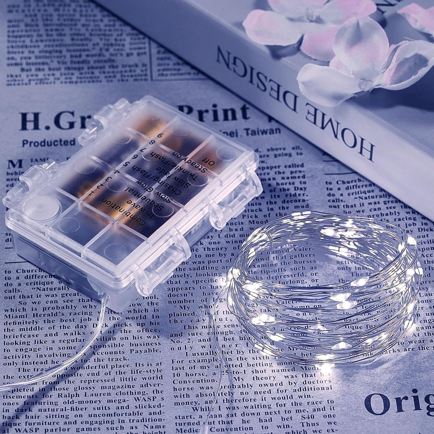 1 Pack 65.6 Ft. Battery Operated Outdoor String Lights with Remote & Timer, LED Cool White Fairy Lights, Waterproof Twinkle Lights for Bedroom, Dorm, Mason Jar, Wedding, Party, Christmas