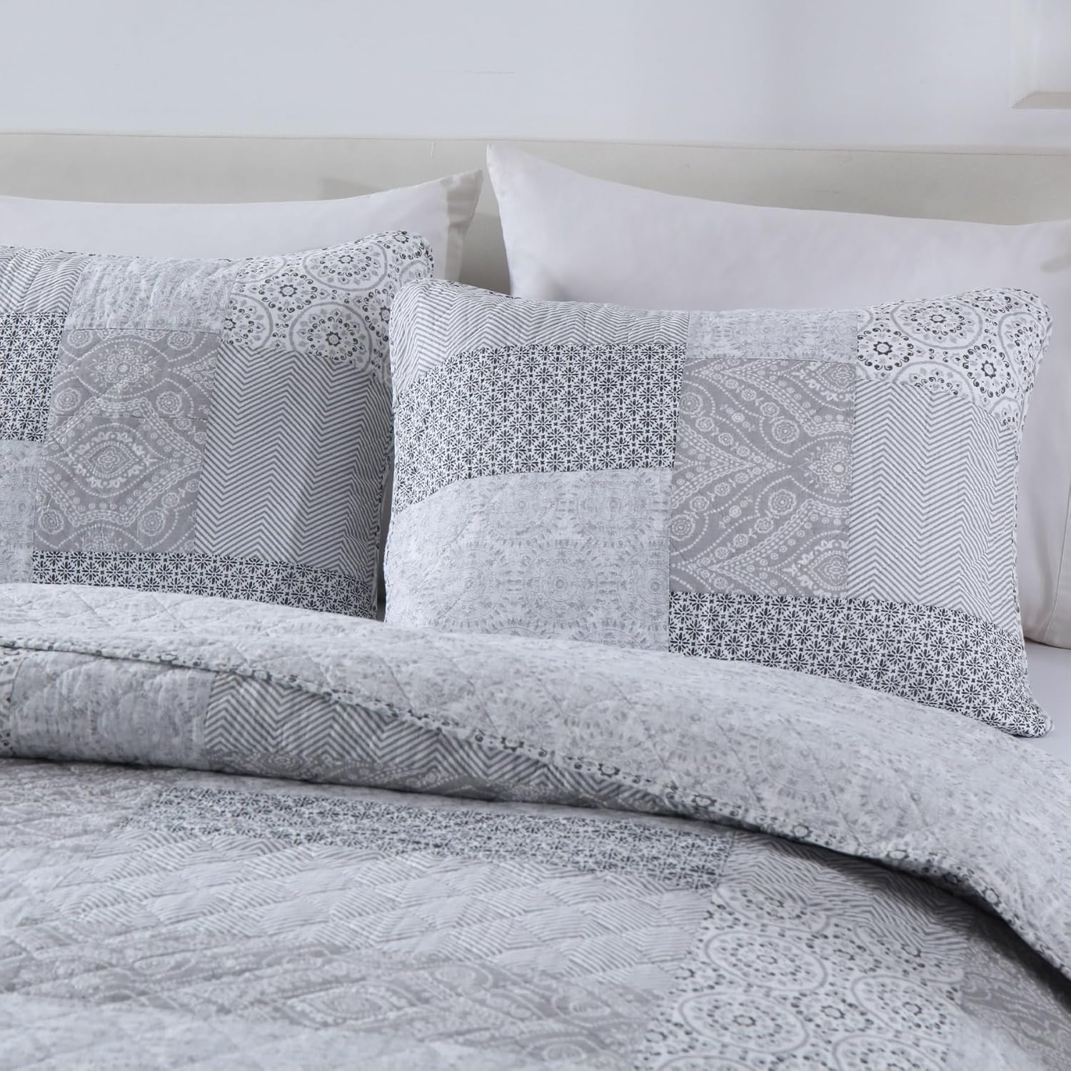Secgo Queen Comforter Set for Bed - 100% Cotton Quilts Queen Size, Black Bedspreads (90 * 98 Inch) with 2 Pillow Shams, Patchwork Reversible Lightweight Bedding