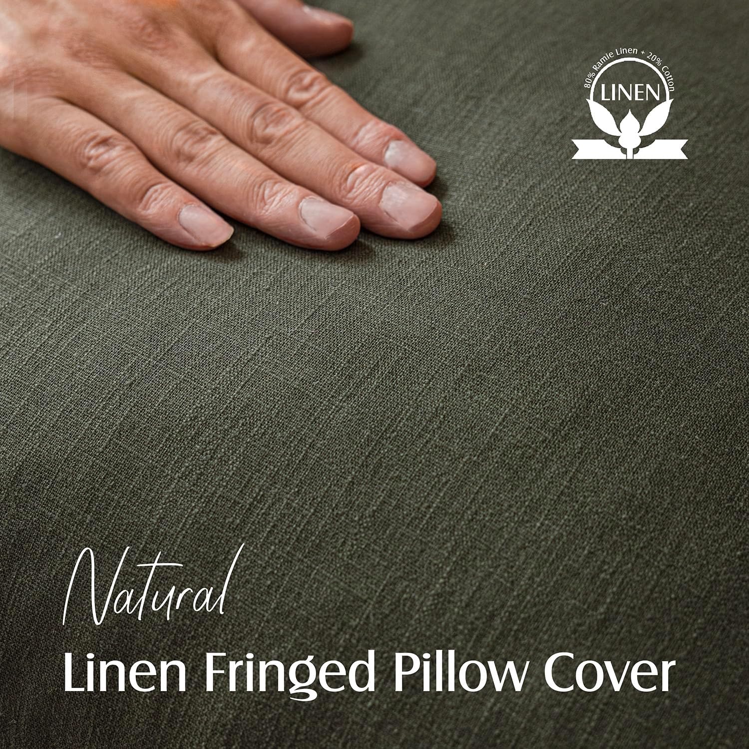 Foindtower Set of 2 Decorative Linen Fringe Throw Pillow Covers Cozy Farmhouse Cushion Cover with Tassels Accent Pillowcase for Couch Chair Sofa Bed Living Room Home Decor,16×16 Inch,Dark Olive Green