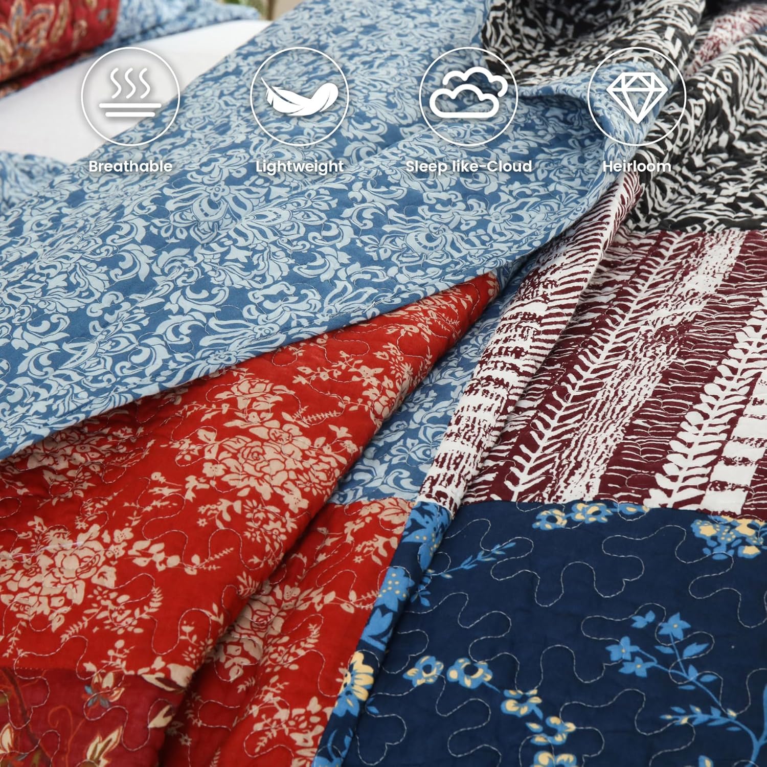 Secgo Queen Comforter Set for Bed - 100% Cotton Quilts Queen Size, Black Bedspreads (90 * 98 Inch) with 2 Pillow Shams, Patchwork Reversible Lightweight Bedding