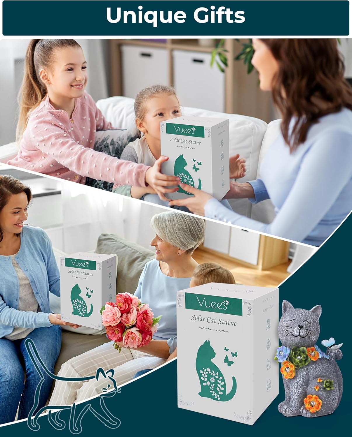 - UNIQUE GIFTS IDEA: Surprise the gardening enthusiasts in your life with a unique and enchanting gift. Vuees Solar Cat Statue makes for a heartwarming housewarming present, perfect for moms and grandmas who cherish their outdoor spaces.
