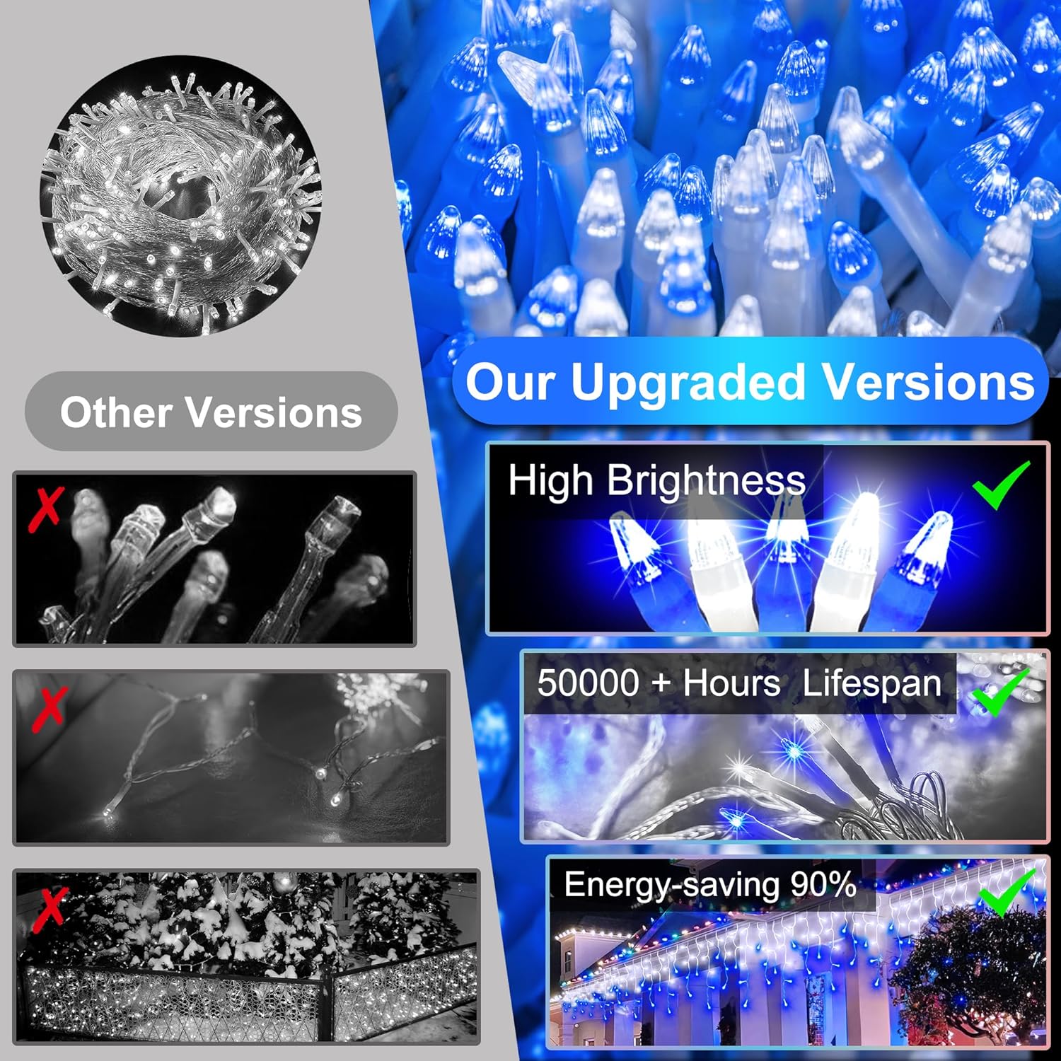 - Unleash Holiday Magic: Illuminate every corner with our stunning 792 LED icicle lights! Stretching 82 feet and featuring 176 enchanting drops, they create a dazzling display with their diamond-shaped lenses. Perfect for rooftops, fences, and trees, these lights turn your space into a festive wonderland. Spread joy and warmth with a magical touch that makes every holiday gathering truly unforgettable