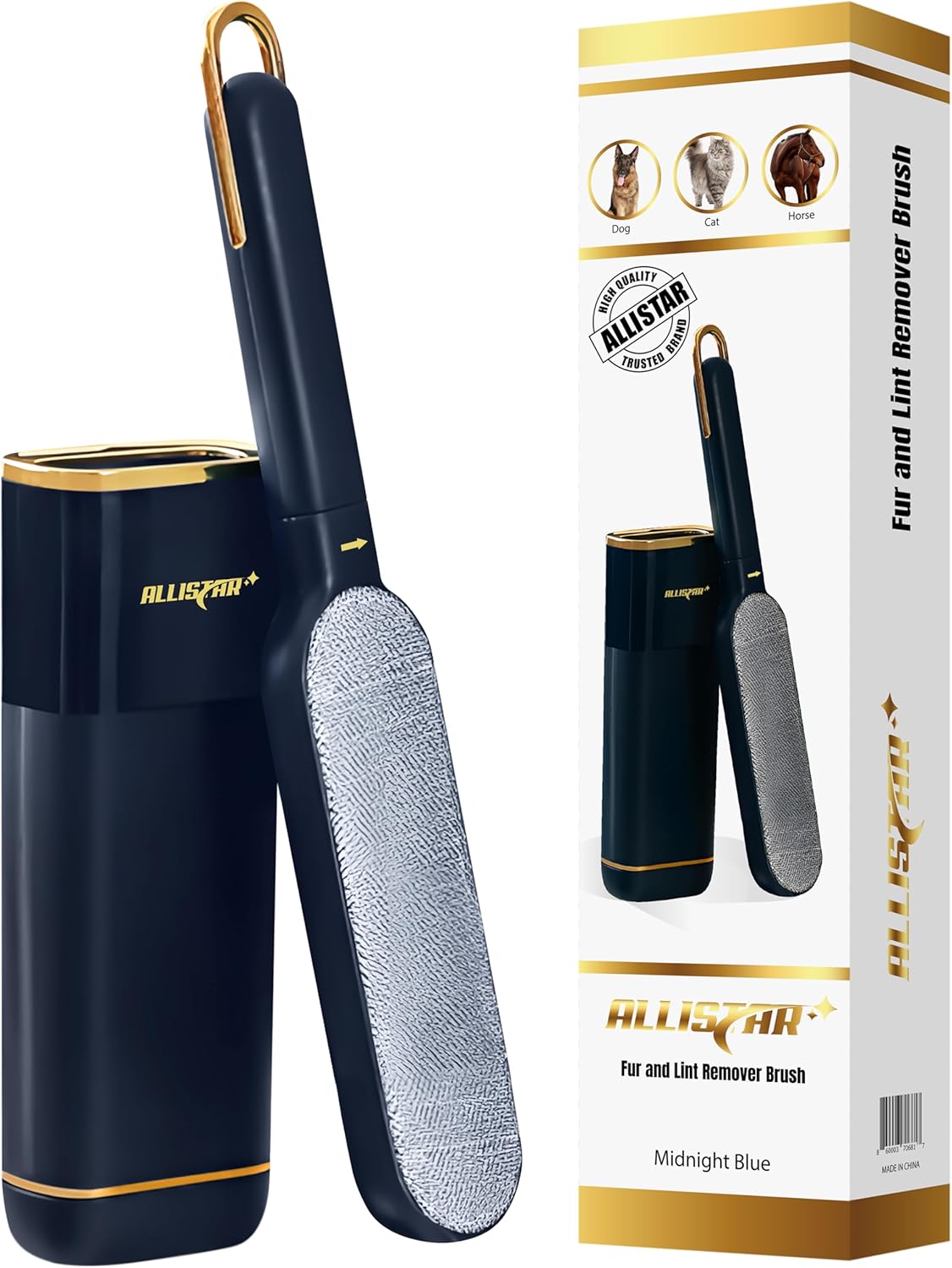 Lint Brush, Lint Remover, and Pet Hair Remover for Laundry, Clothes, Couches, Car Seats, Furniture and Fabric. Reusable Dog and Cat Fur Wizard Hair Removal Brush. ALLISTAR (Midnight Blue)