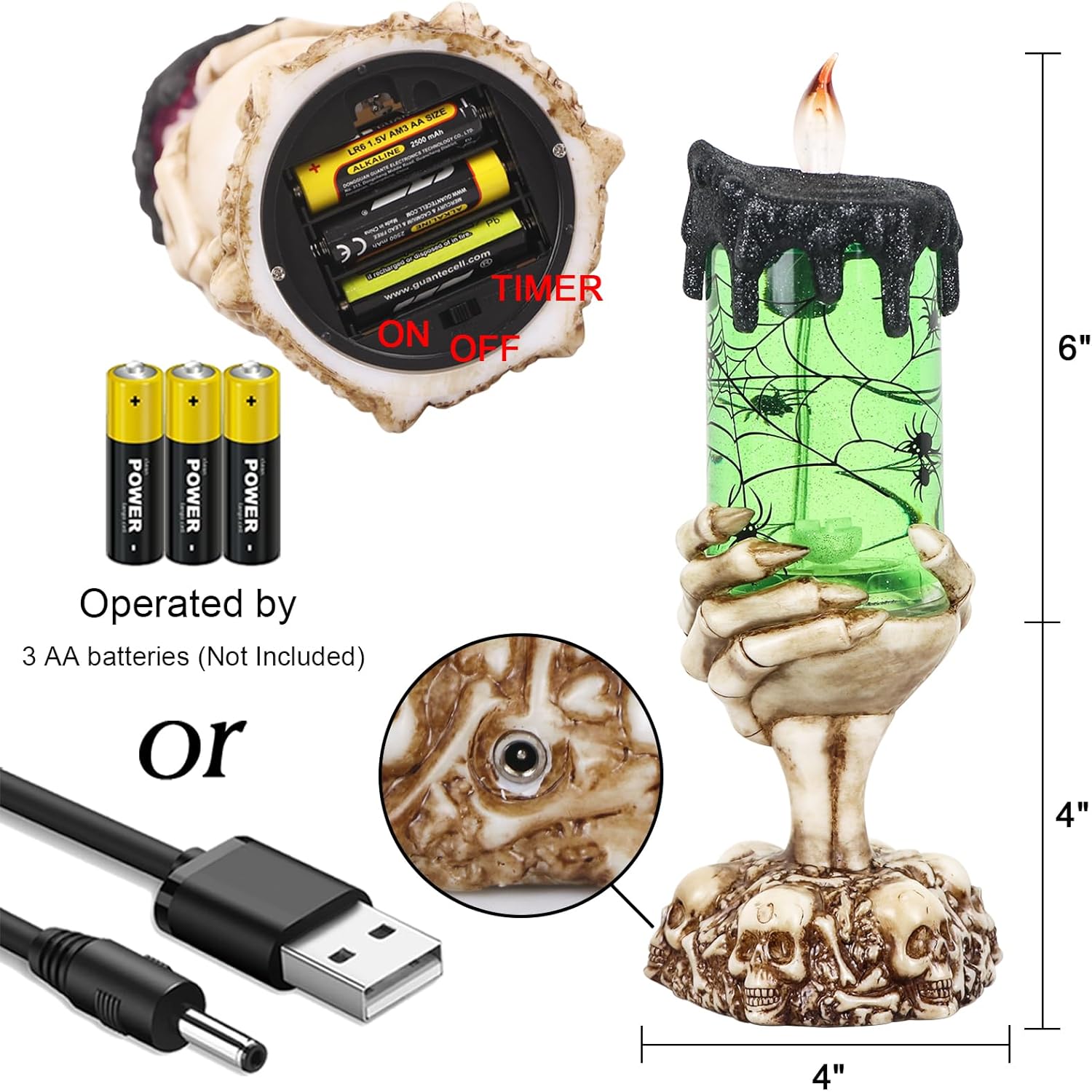 - [Power Supply]: Unlike traditional flameless candles, this lighted snow globe candle powered by 3 AA batteries and built-in motor swirl the water like the Spiders spinning around the candle.