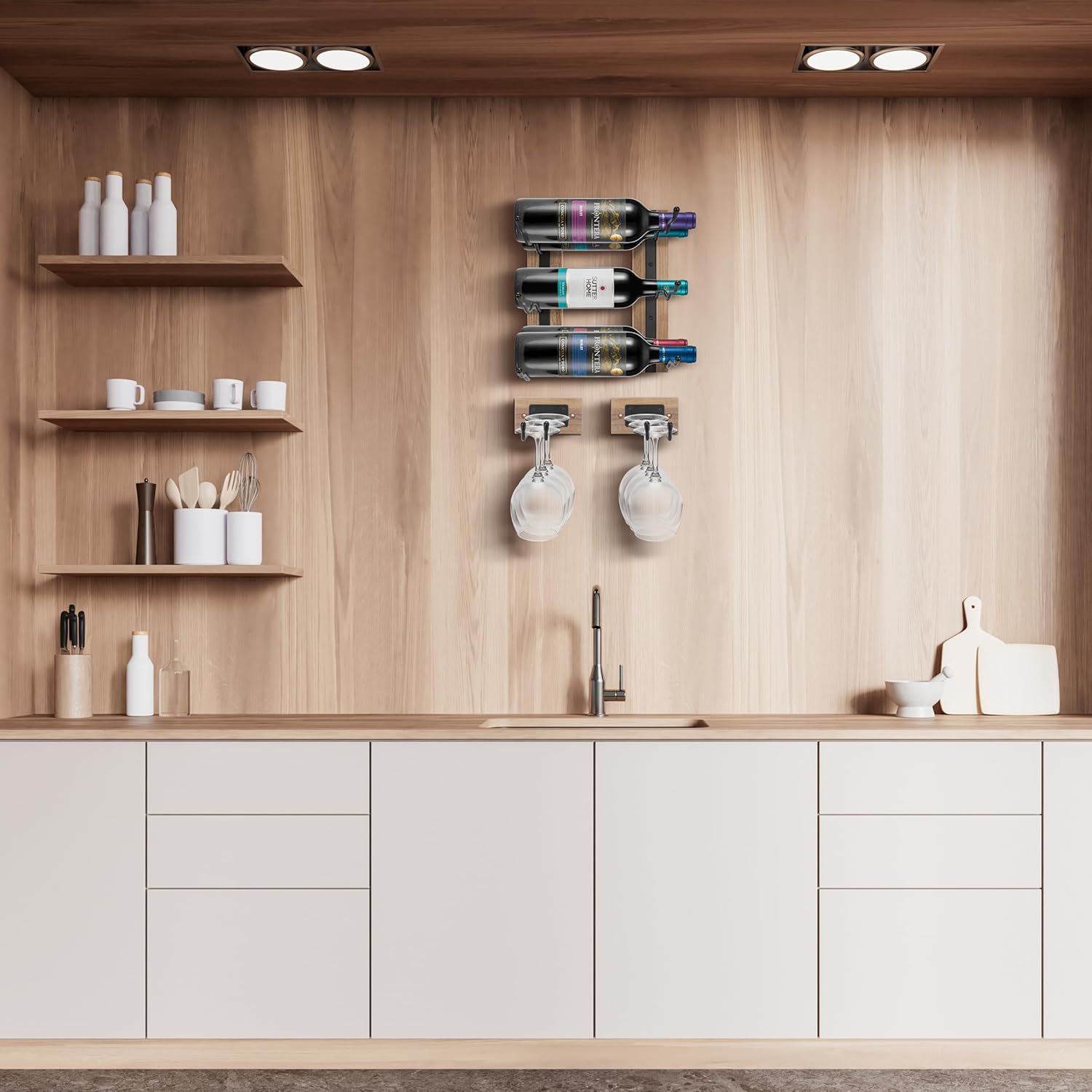 - Wall Mounted Wine Glass Rack: Organize wine glasses, champagne glasses, and more glassware in the Sorbus Wall Mounted Stemware Holder - Set comes with 2 wall mounted glass organizer racks - Features a beautiful wood finish