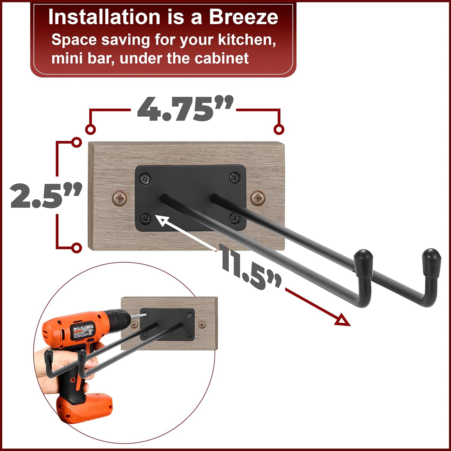 - Design Details: Wine Glass Hanger measures approximately 12”L x 4.75”W x 2.5”H