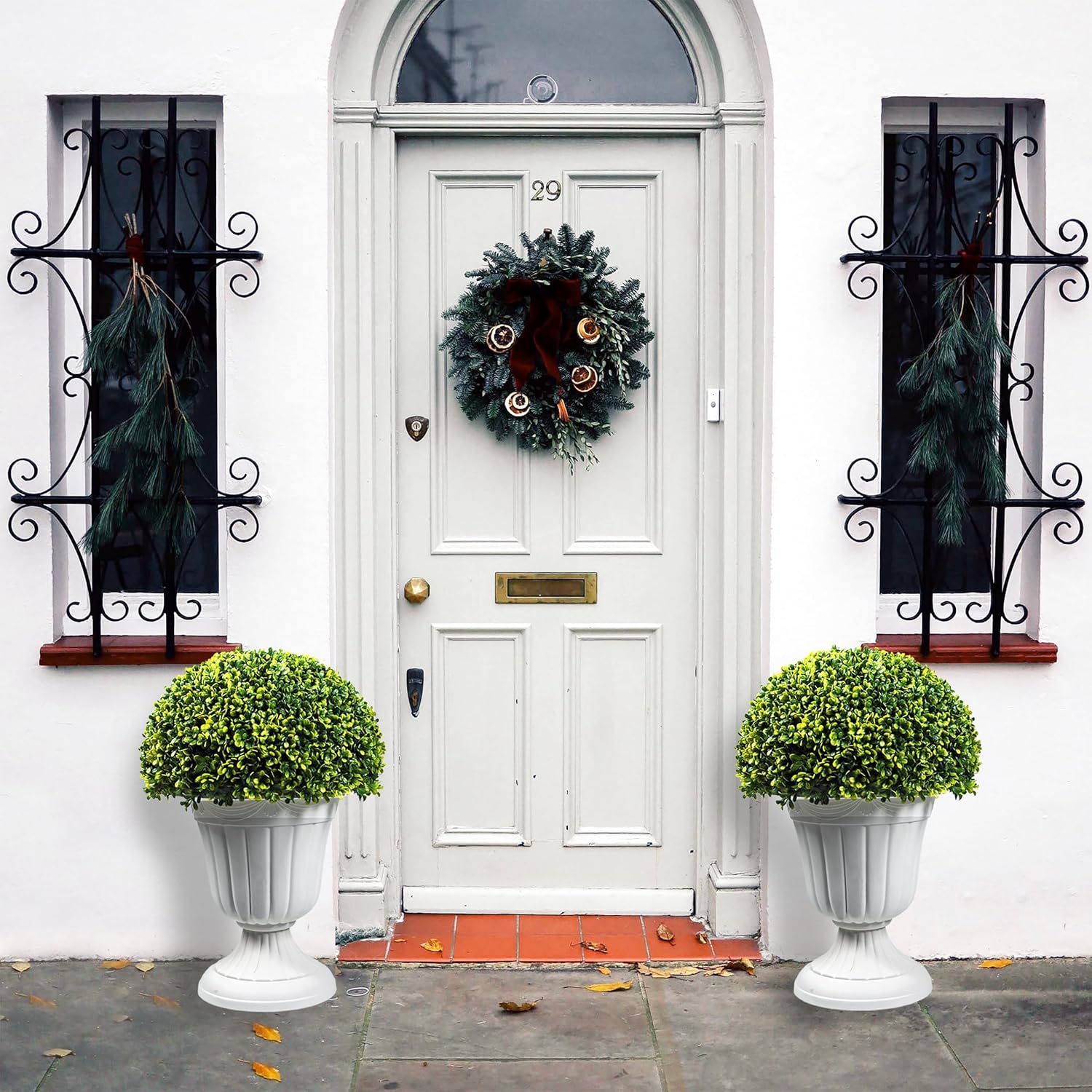 - 【Durable Material】:The leaves of artificial boxwood are made of soft and superior PE material, The bottom vase is made of high hardness PP material. They are free from any unpleasant odors, ensuring a fresh and natural feel. The leaves feature realistic textures that are both UV and weather-resistant, making them suitable for outdoor display without any loss of quality.