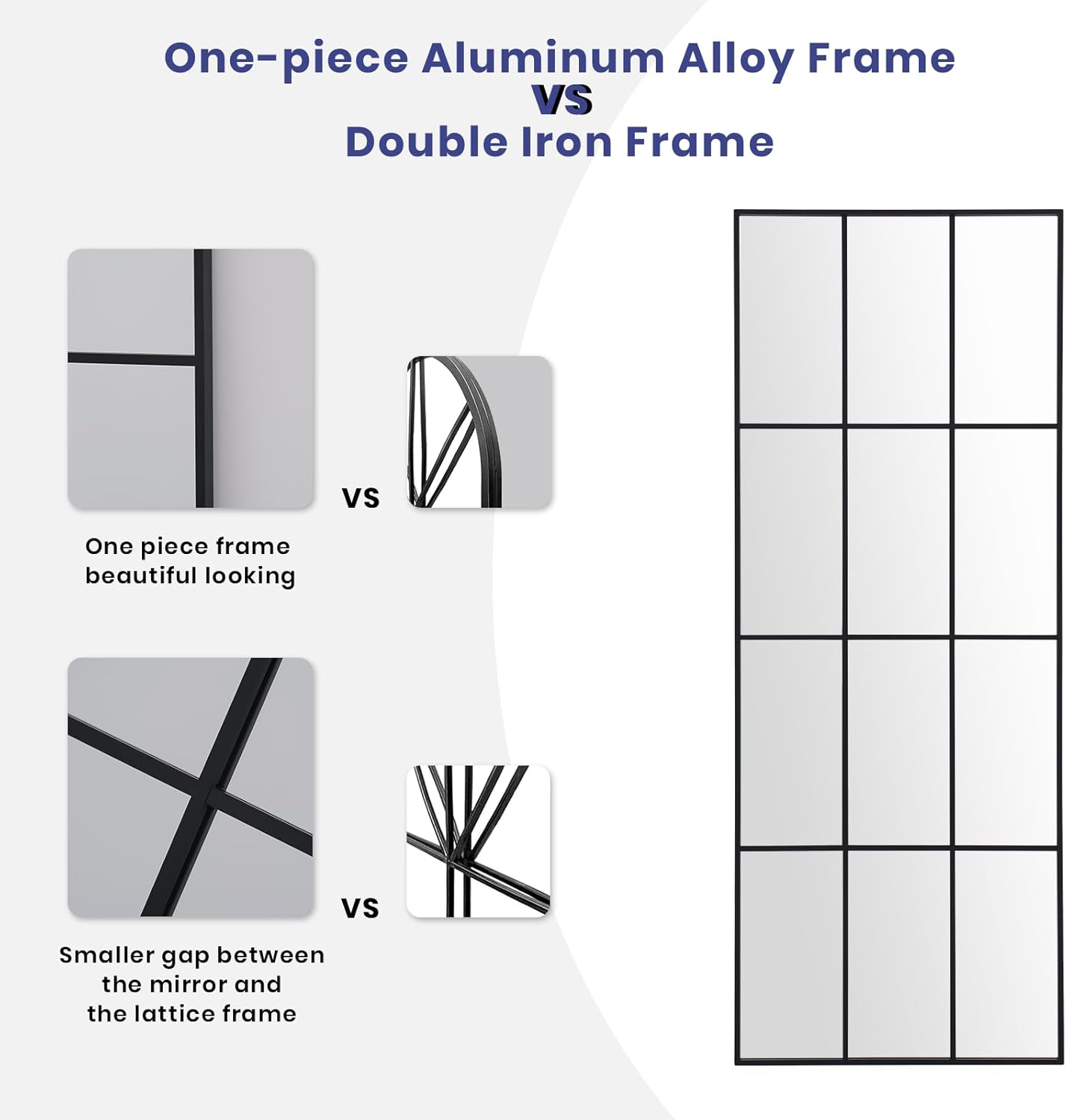 - Gifts For Everyone: This windowpane full length mirror is suitable for everyone you care about. A best gift idea for your mom, wife, partner, deaughter, sister and friend. Package including a full body mirror, installation accessiories and instruction