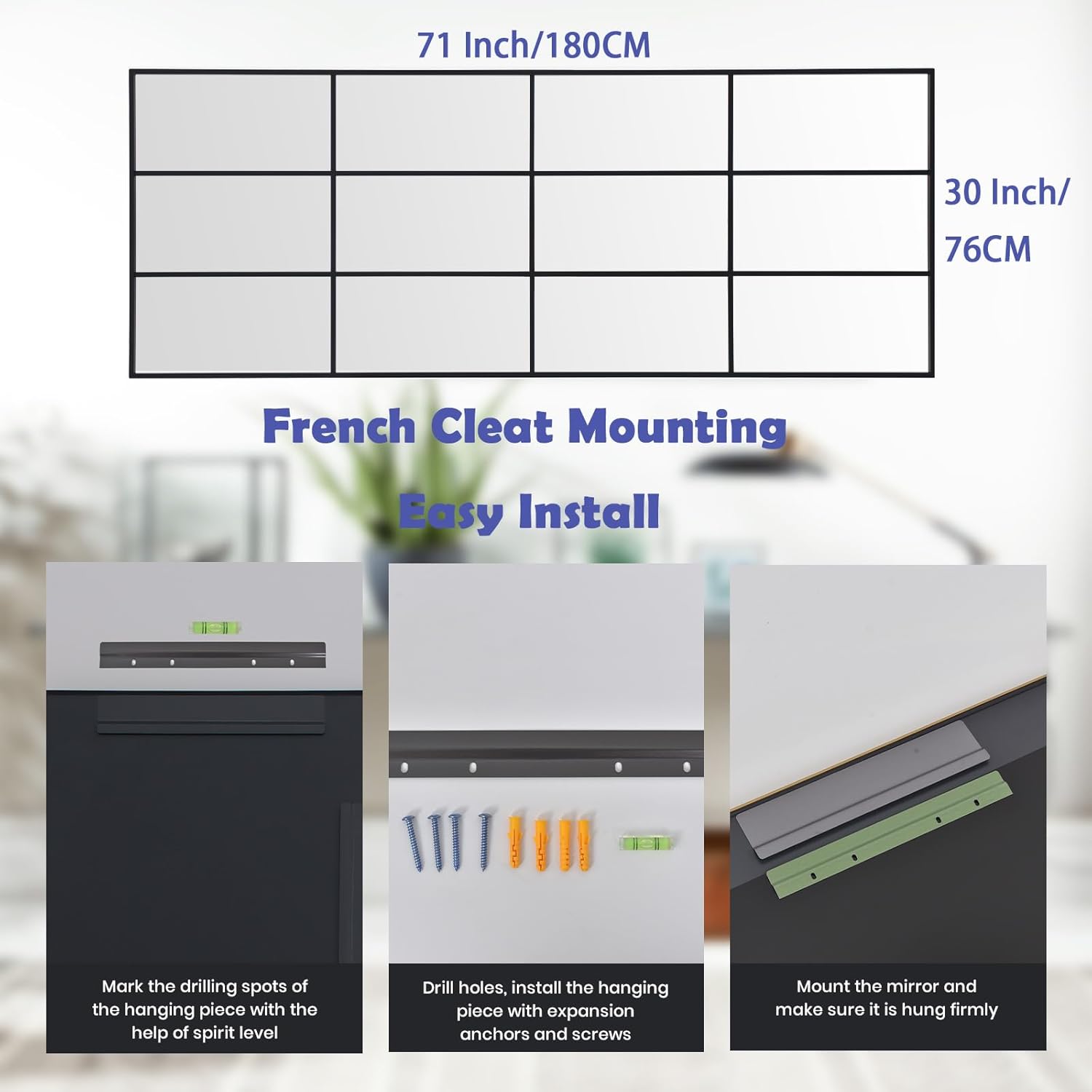 - Easy Two Ways Install in Various Home Spaces: No assembly required, hang on the wall, lean against the wall, widely used as a dressing mirror in bedroom, wall decorative mirror in living room,dinding room and entrance