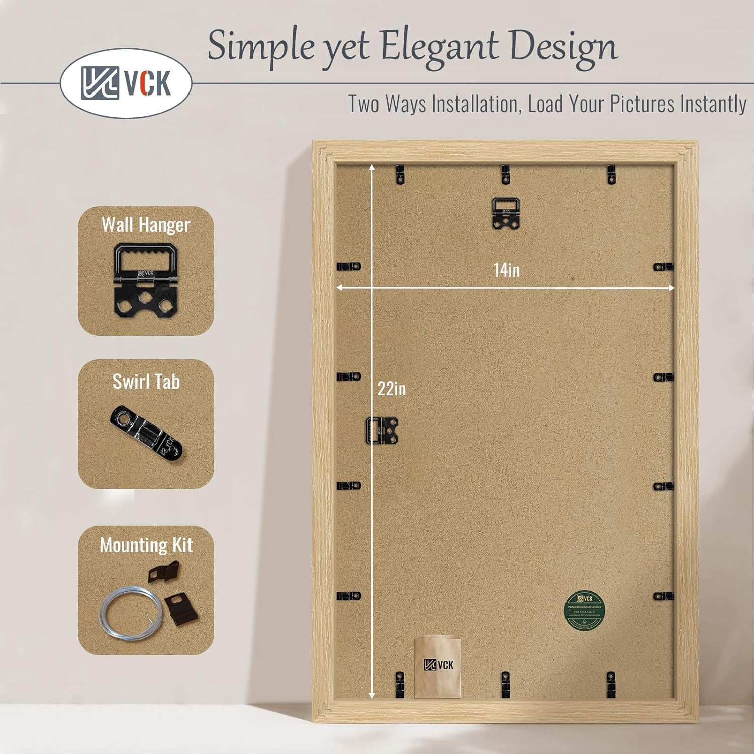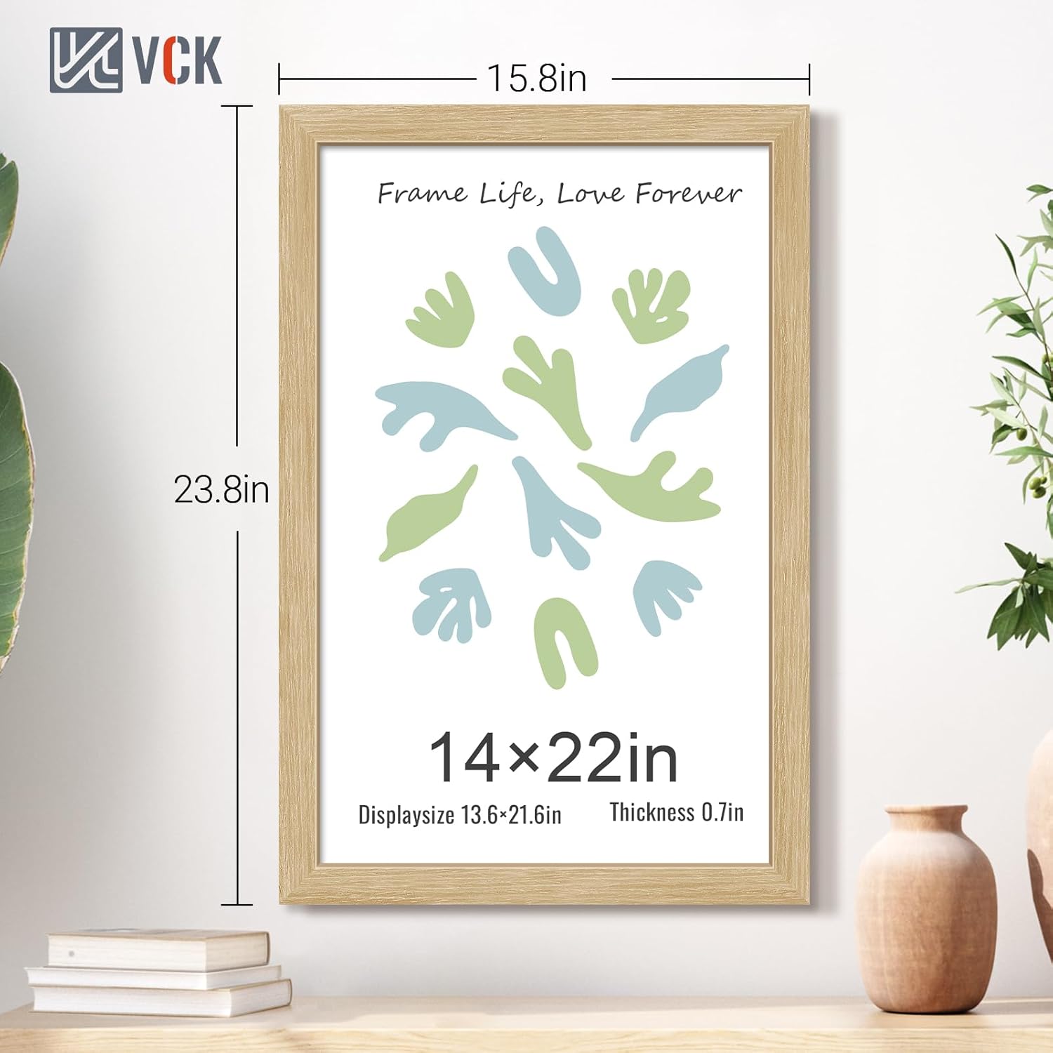 VCK 14x22 Picture Frame Set of 3 - Oak, Natural Solid Wood Poster Frames, Wall Gallery Frame