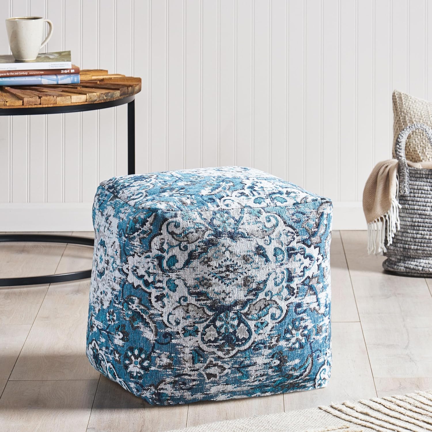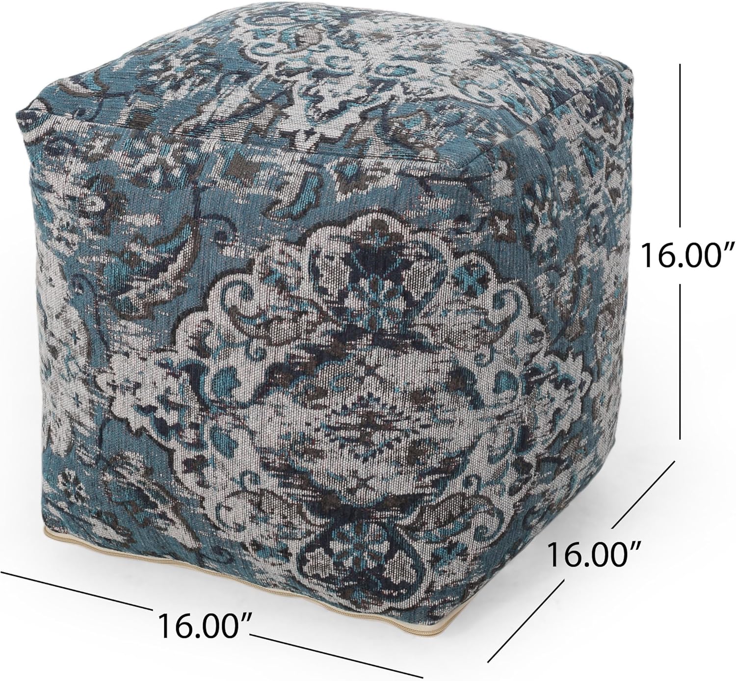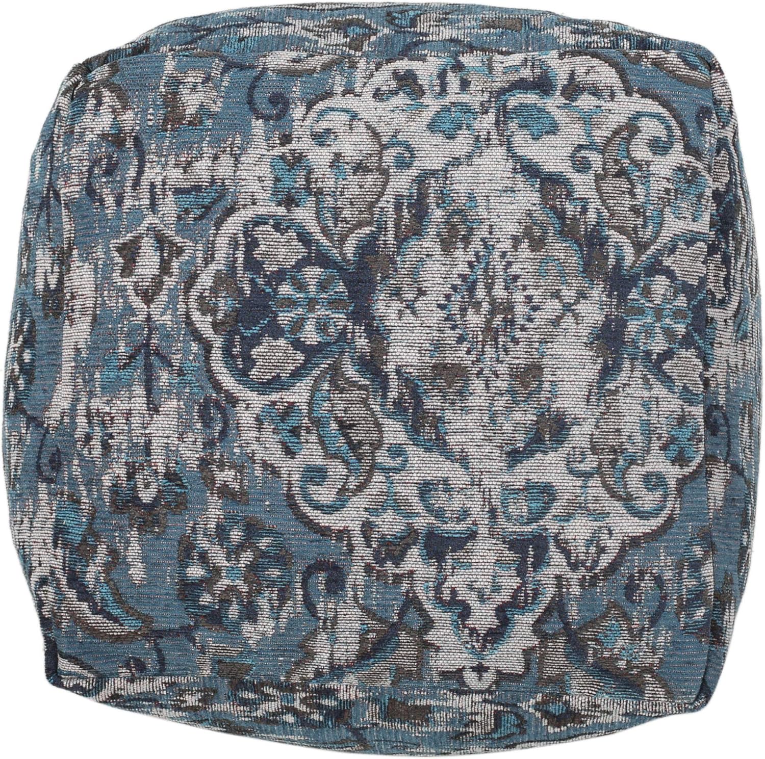 GDFStudio Boho Handmade Fabric Cube Pouf Ottoman Foot Stool - Bean Bag Floor Chair - Foot Rest Couch for Living Room Bedroom,Blue,16"" x 16"" x 16"", Conch,blue, 313832N