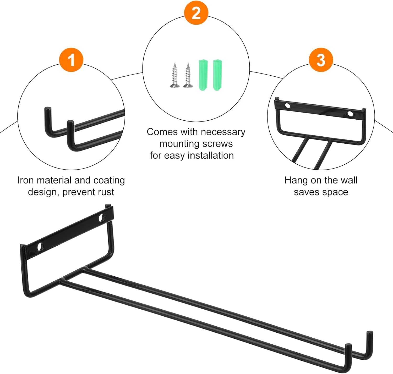 - [Easy to Install] Our wine glass rack comes with the necessary mounting screws for easy installation. You can only need to use a screwdriver to screw the provided screws into the wood of the cabinet. They fit perfectly under cabinets in a few minutes.