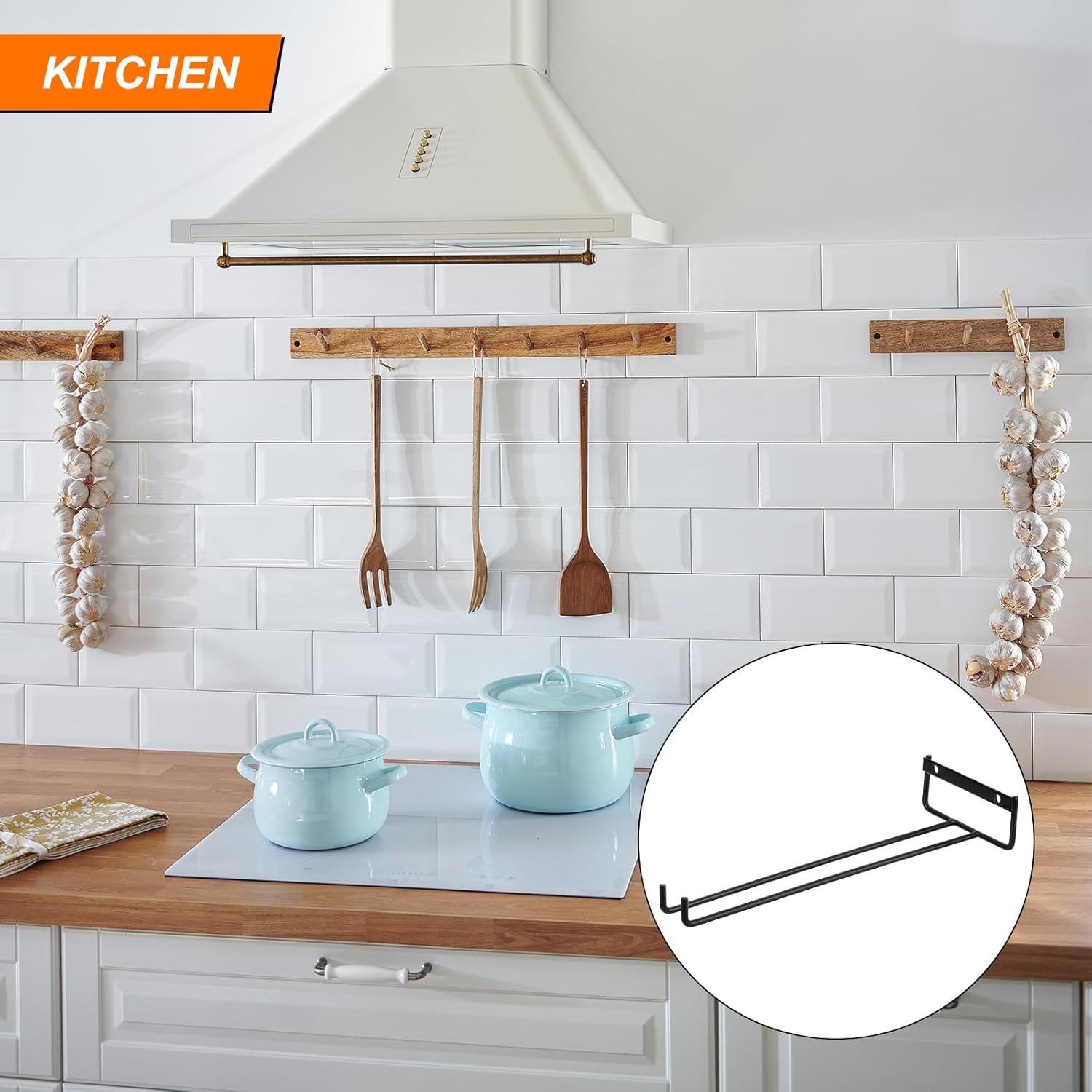 - [Compact/Elegant] The wine glass rack saves cabinet space and fits perfectly into the corner below the shelf, making it perfect for kitchen or bar decor. The shelves under the cabinets hang glasses upside down to keep the glass holder free of dust.
