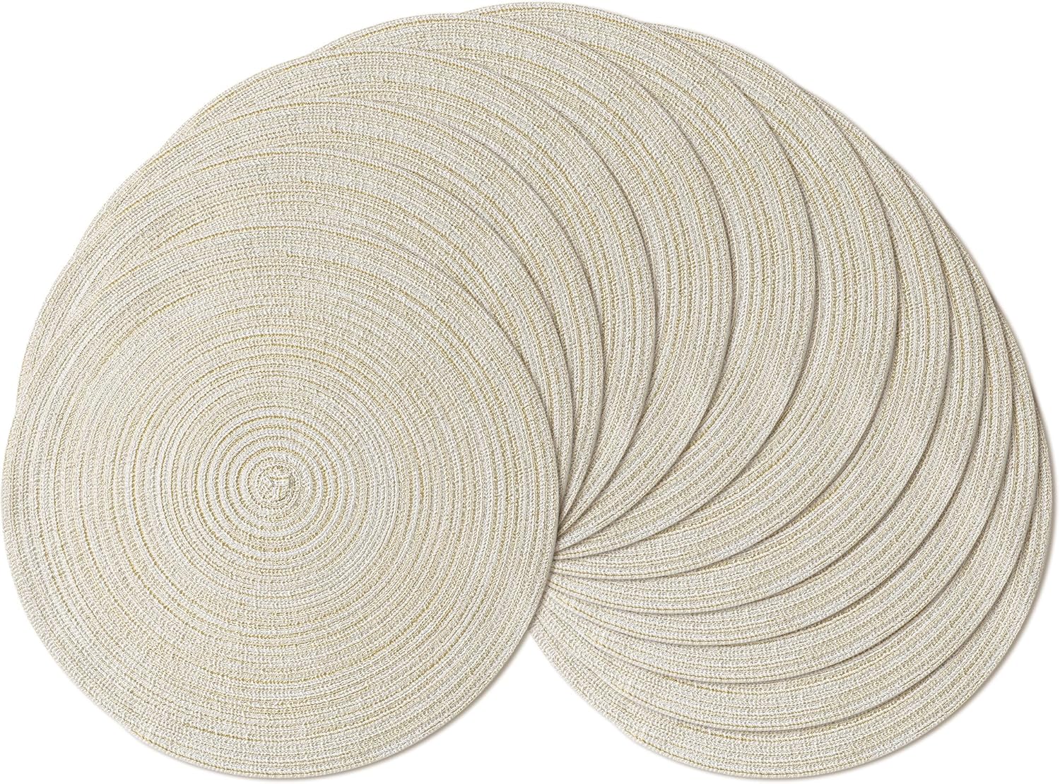 Leetaltree Round Placemats Heat and Slip Resistant Cotton Table Mats, Washable Bohemian Placemats for Dining Tables (White Beige, Set of 8)