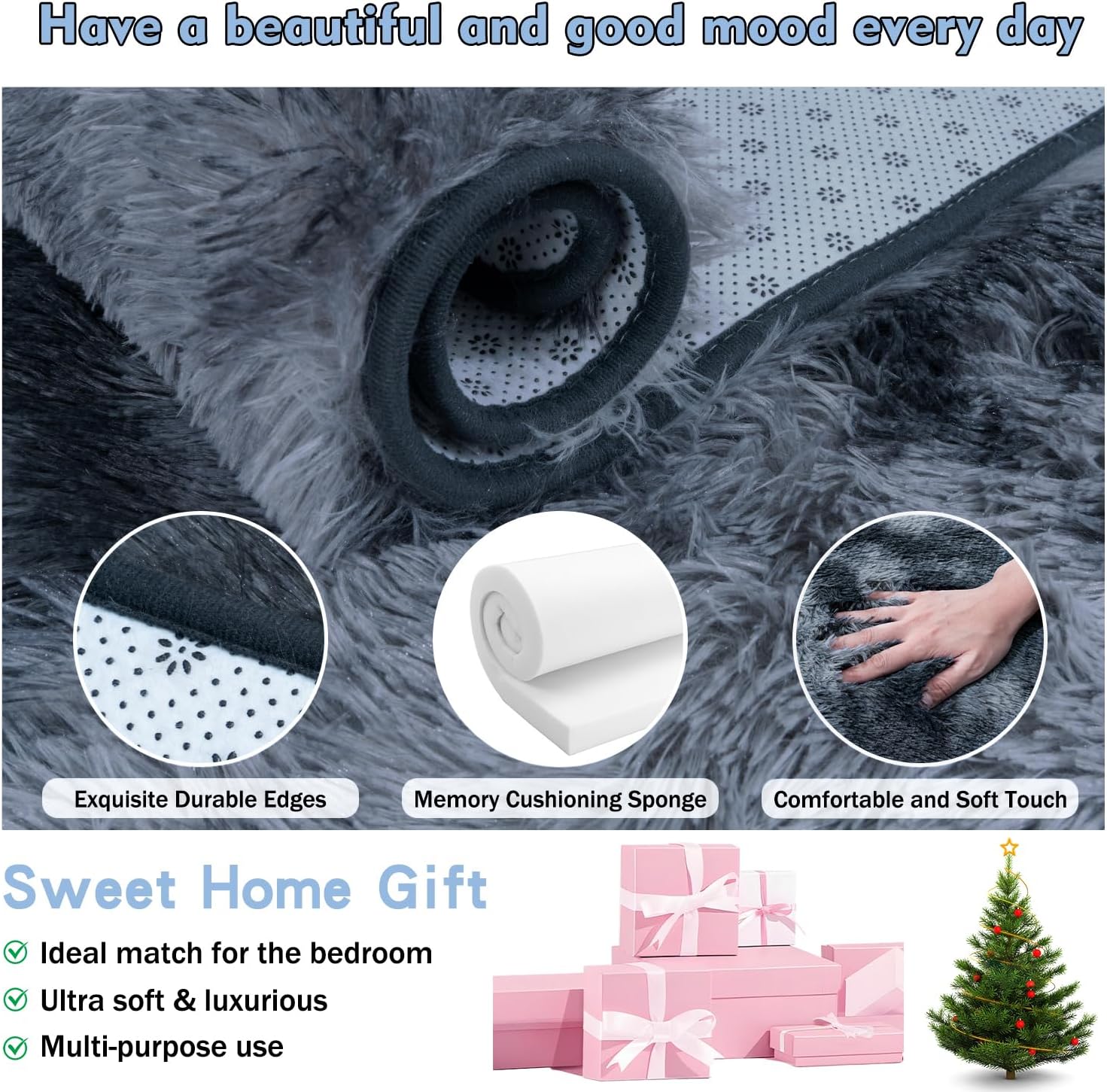 - Non-slip Rug--Enhanced Stability:Don't overlook the importance of slip resistance! The Rezutan fuzzy rug features a specialized non-slip backing with dot-molded granules, providing a firmer grip on any type of flooring. Additionally, the tight edging process ensures minimal shedding, maintaining the rug's fluffy appearance, makeing it a practical choice for any space. Perfect for kids and pets playing on the fine throw rugs for living room.
