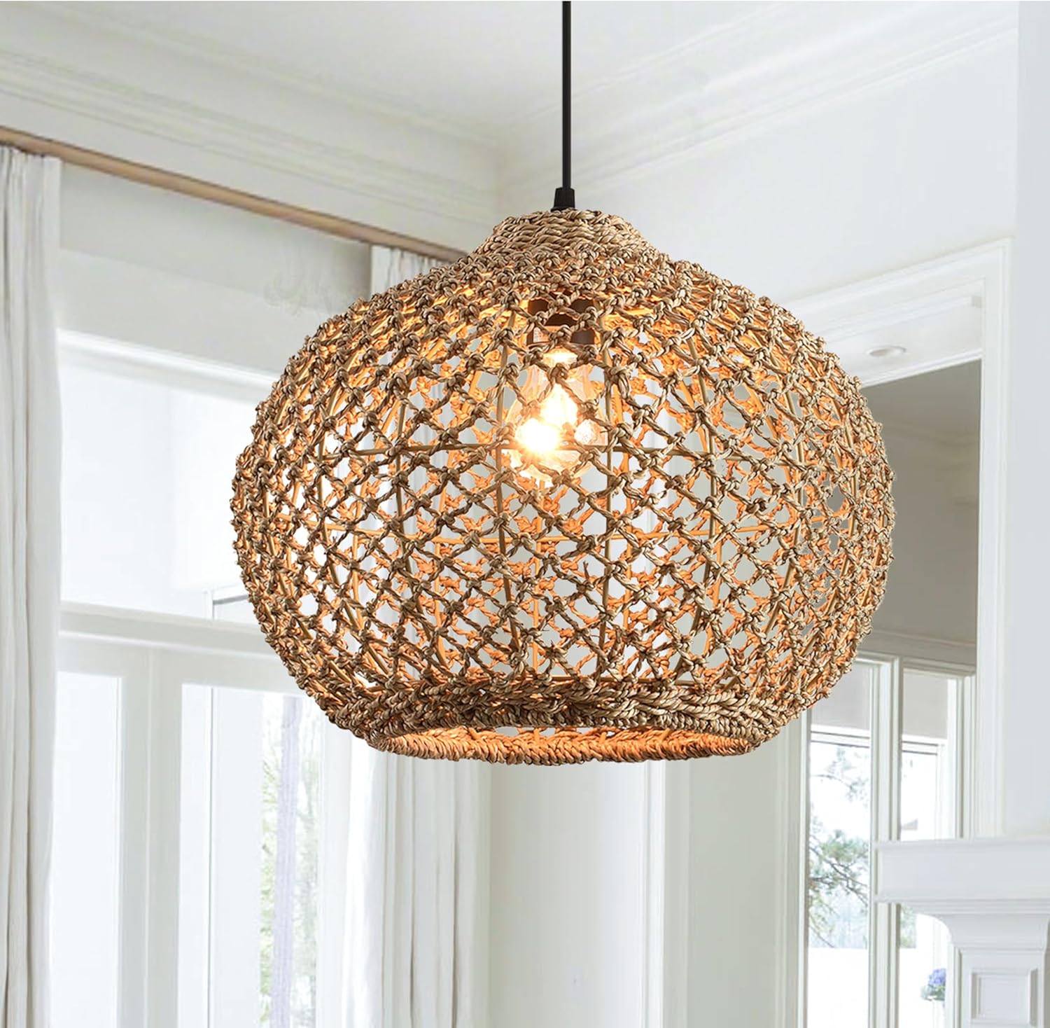 - Simple installation: This is a hand-woven rattan lamp; includes installation instructions and accessories required for installation; installation is very convenient; for safe and reliable installation; we recommend that you contact a professional electrician directly
