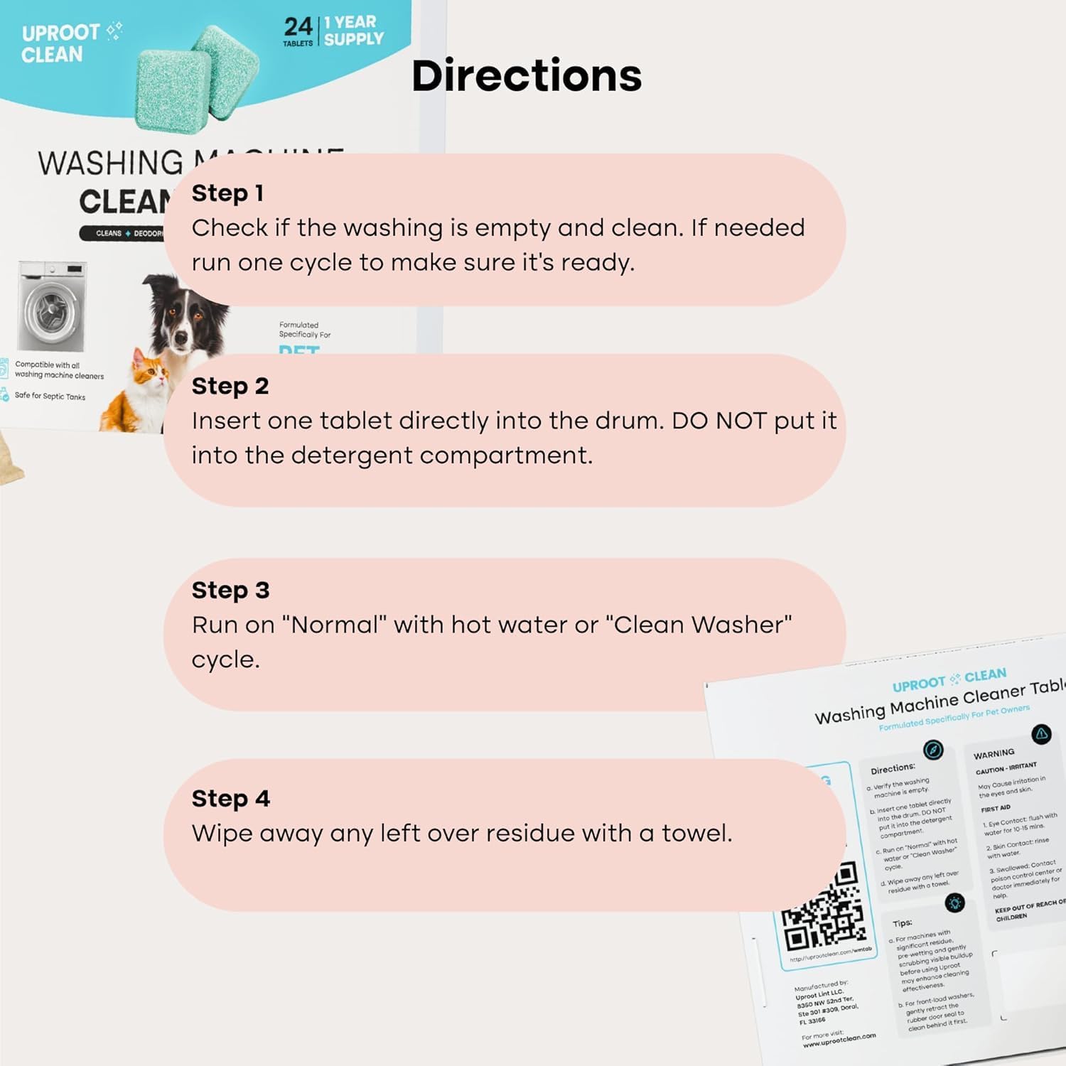 - Eliminate Pet Odors for Good: Uproot Clean washing machine cleaning tablets combine Tea Polyphenols & other ingredients to destroy bad odors, leaving every laundry load perfectly fresh.