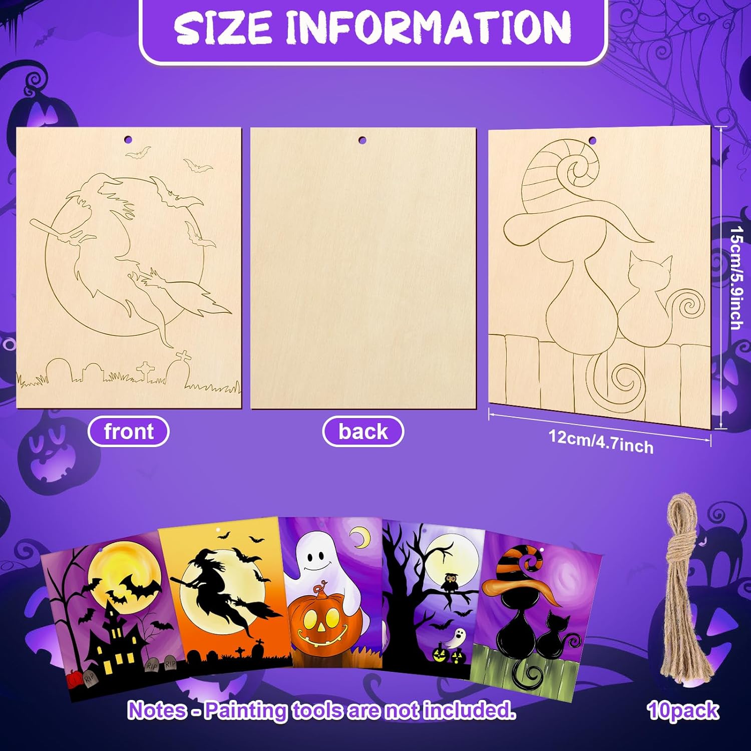- Large Unique Halloween Wooden Crafts To Paint - These unfinished woods come with Halloween elements laser carving line drafts, such as J-O-Lantern pumpkins, ghost house, black cats, witch, and bats. Sufficient quantity, and suitable size for you to use on DIY craft projects, you can also share them with your friends.