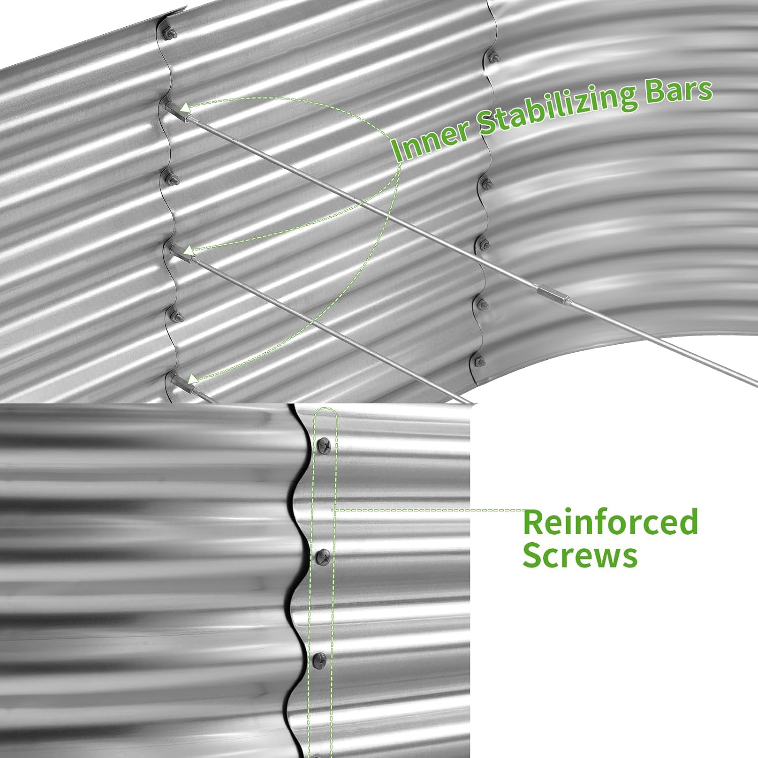 - Durable material: Outdoor planter box is made of stable thickened galvanized metal, corner and frame are reinforced, strong resistance to high temperature and corrosion, can be uesd for a long time.